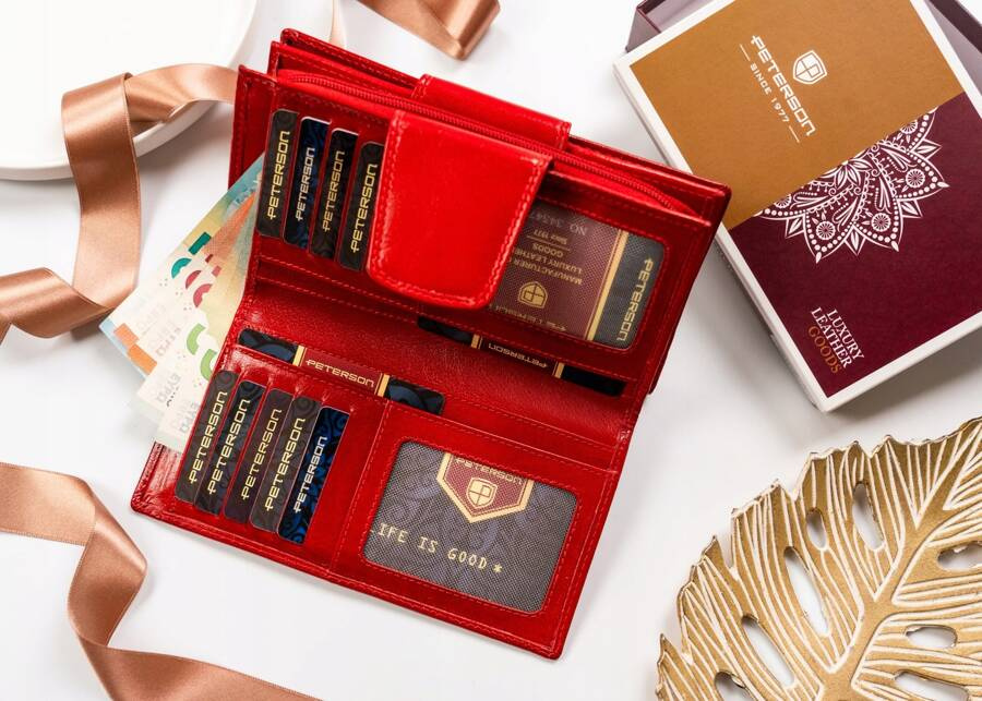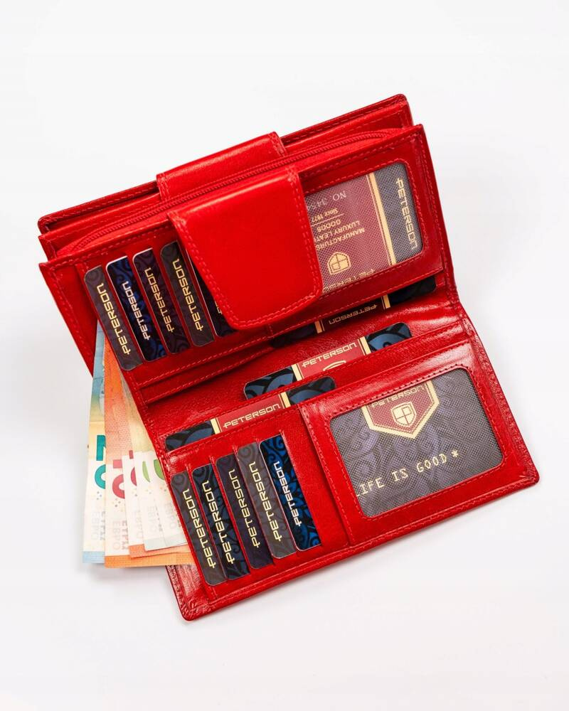 Pojemny, skórzany portfel damski na zatrzask – Peterson