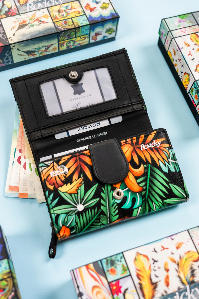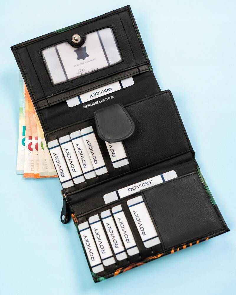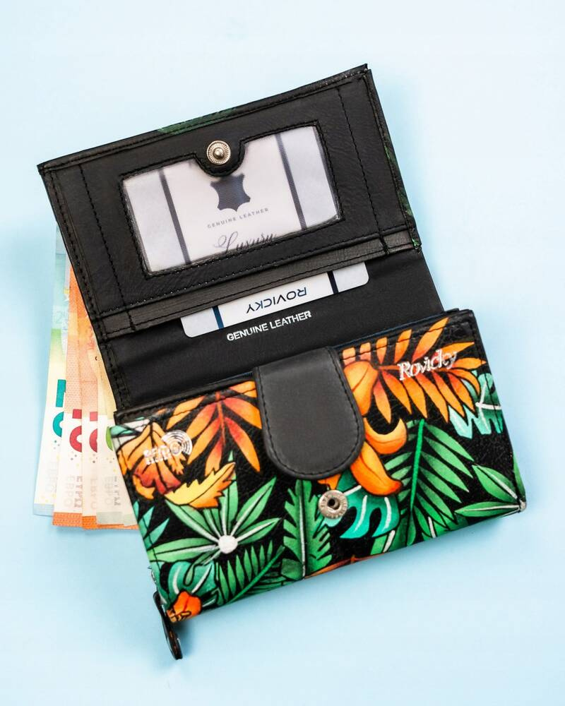 Pojemny, skórzany portfel damski na zatrzask – Rovicky