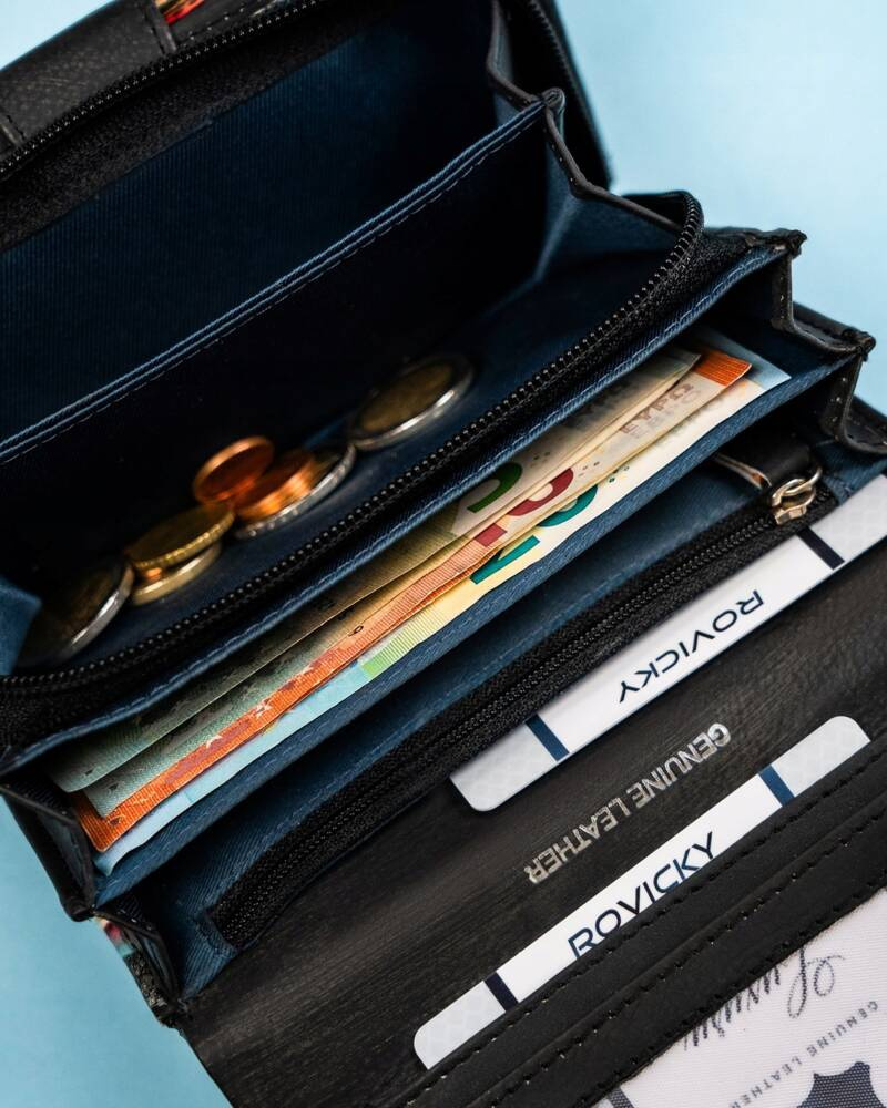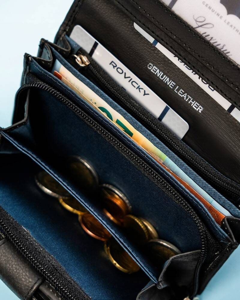 Dzięki sporej ilości schowków portfel znacząco ułatwi Ci segregacje gotówki. Jeśli potrzebujesz przechowywać kilka walut, możesz bez problemu je rozdzielić.