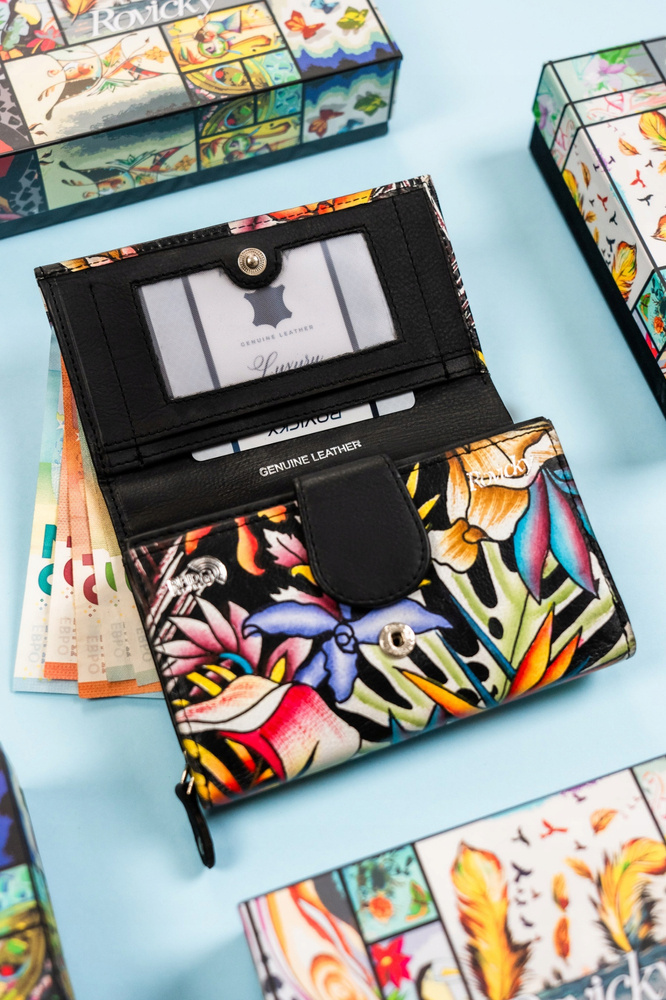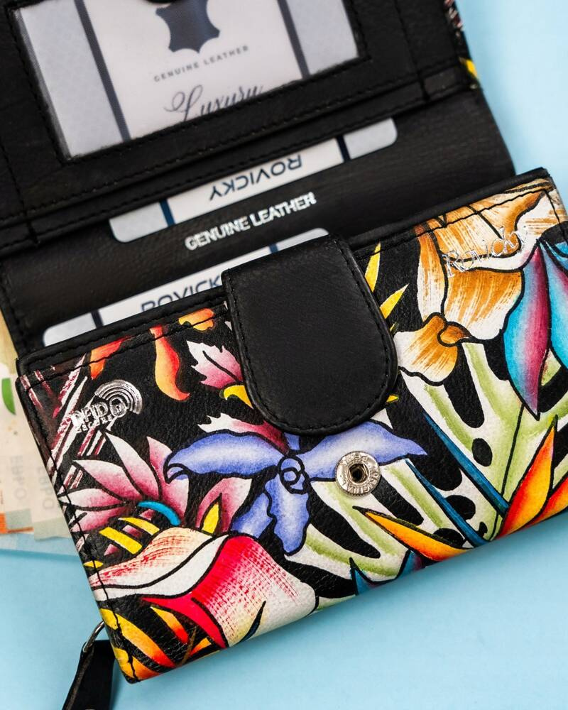 Pojemny, skórzany portfel damski na zatrzask – Rovicky