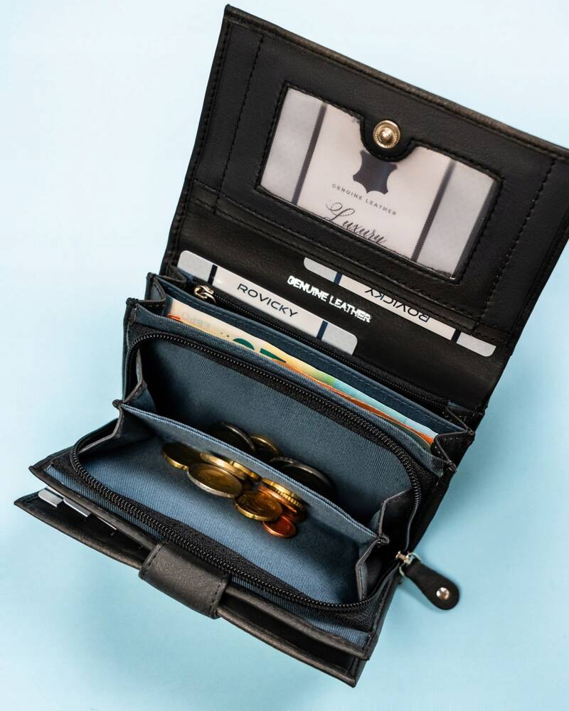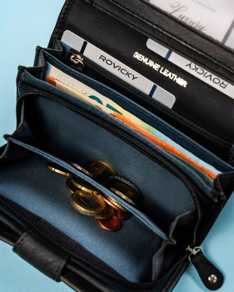 - potrójna kieszeń na bilon, zamykana na zamek błyskawiczny, pozwoli Ci bezpiecznie przechowywać monety;