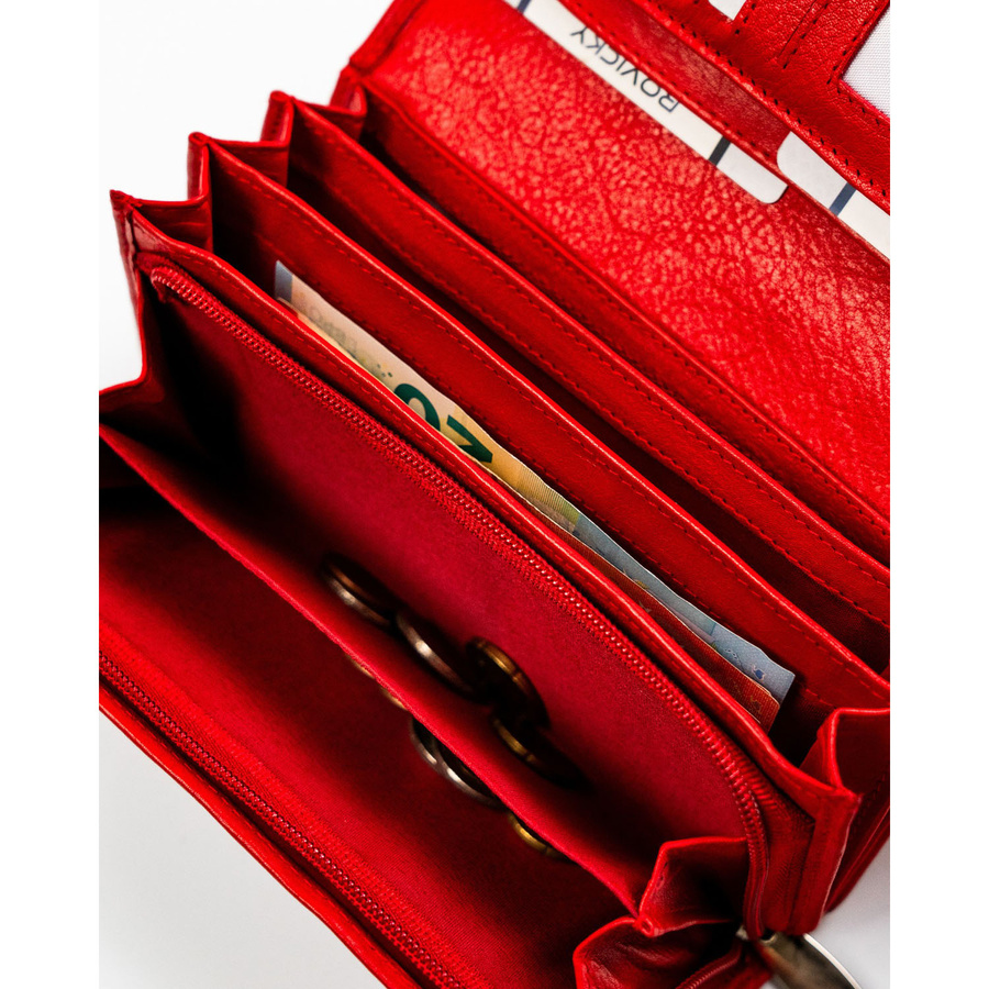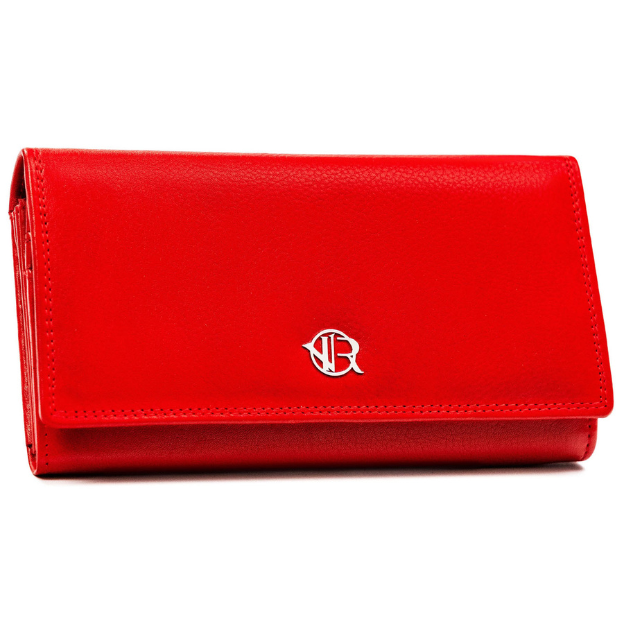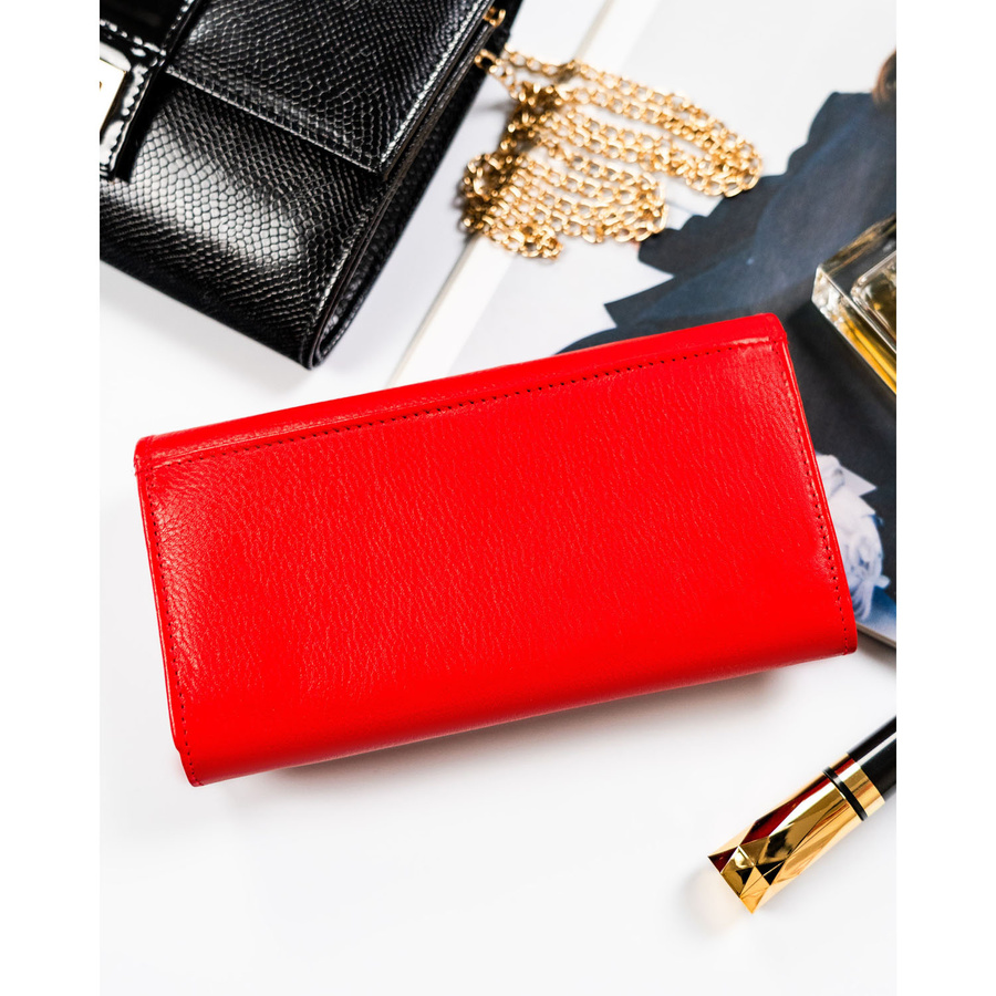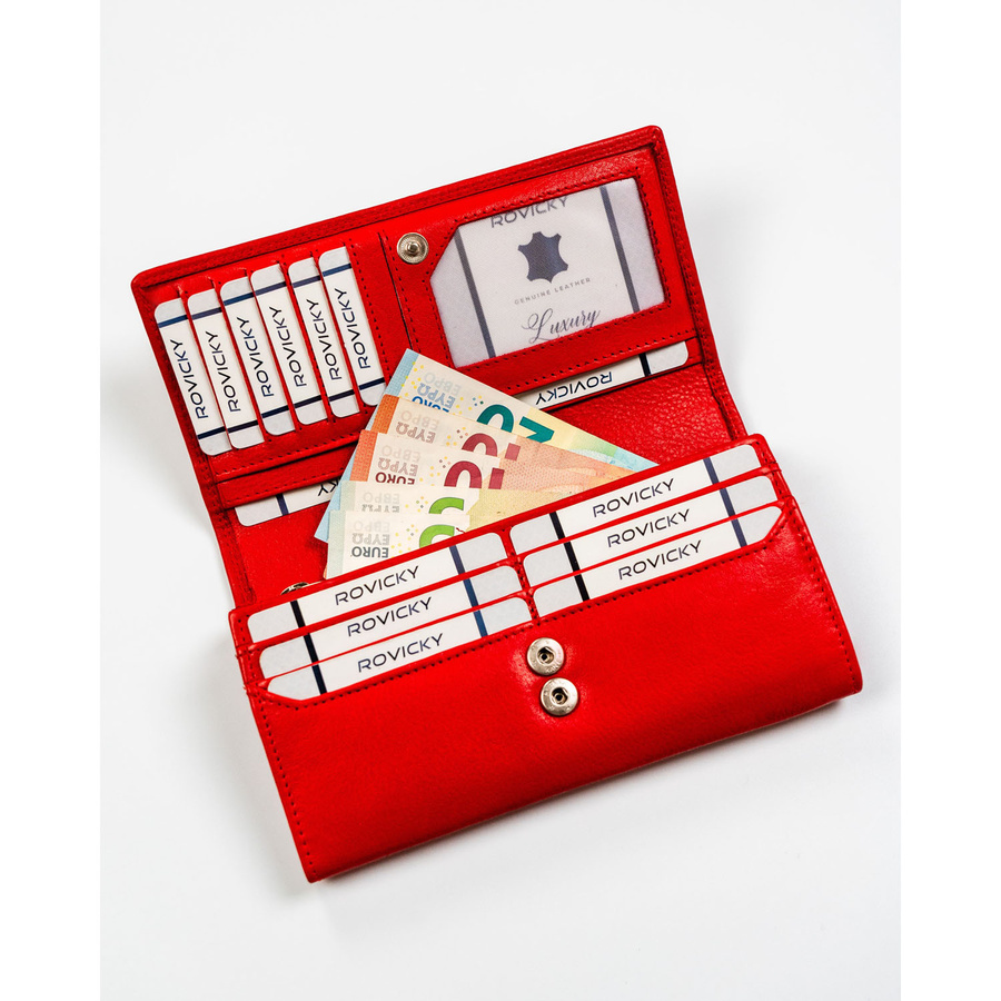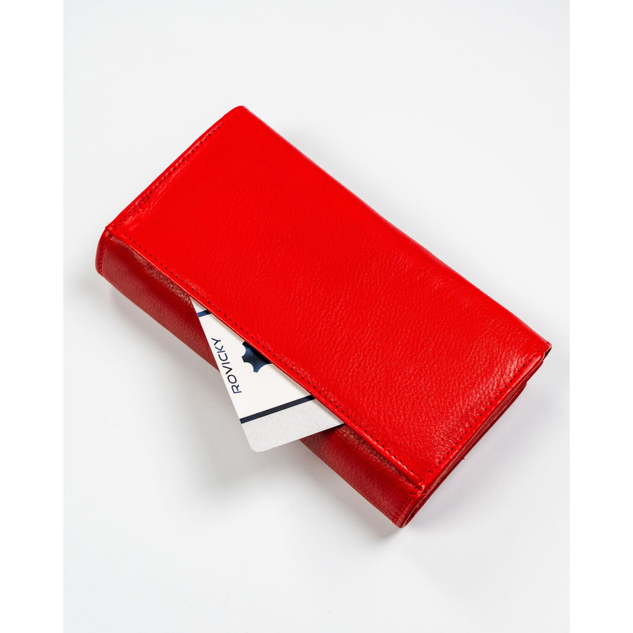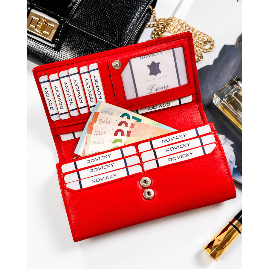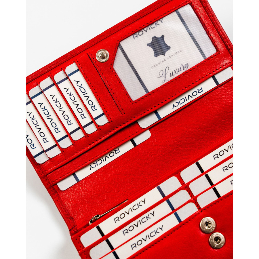 Pojemny, skórzany portfel damski o klasycznym designie w czerwonym kolorze – Rovicky