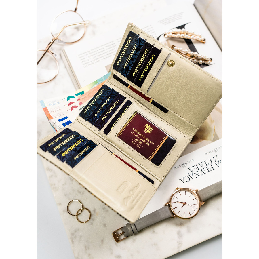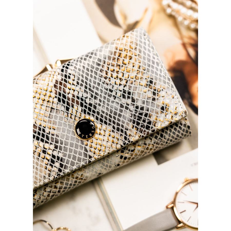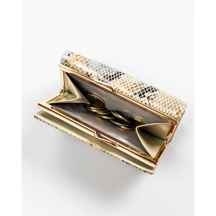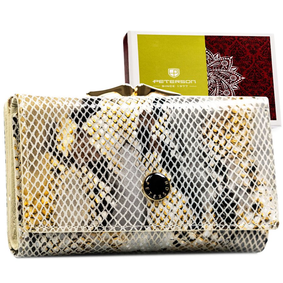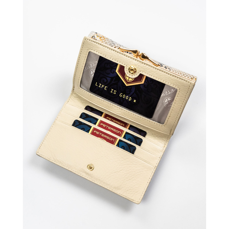 Portfel damski na bigiel i zatrzask wykonany ze skóry naturalnej ze wzorem imitującym skórę węża – Peterson
