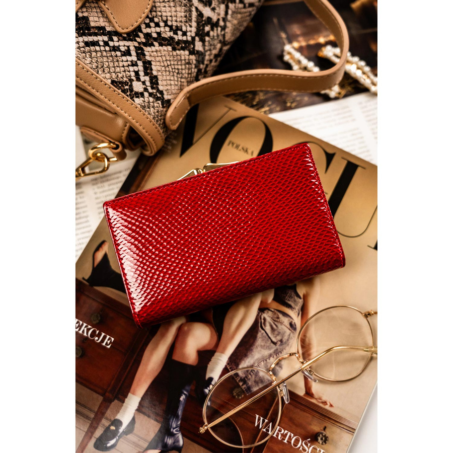 • Niespotykany design | Wykonany z wysokiej jakości materiału o fakturze przypominającej wężową skórę, prezentuje się bardzo luksusowo i stylowo. Kolor portfela to soczysty odcień czerwieni, który nadaje mu wyjątkowego blasku i wyrafinowanego charakteru.