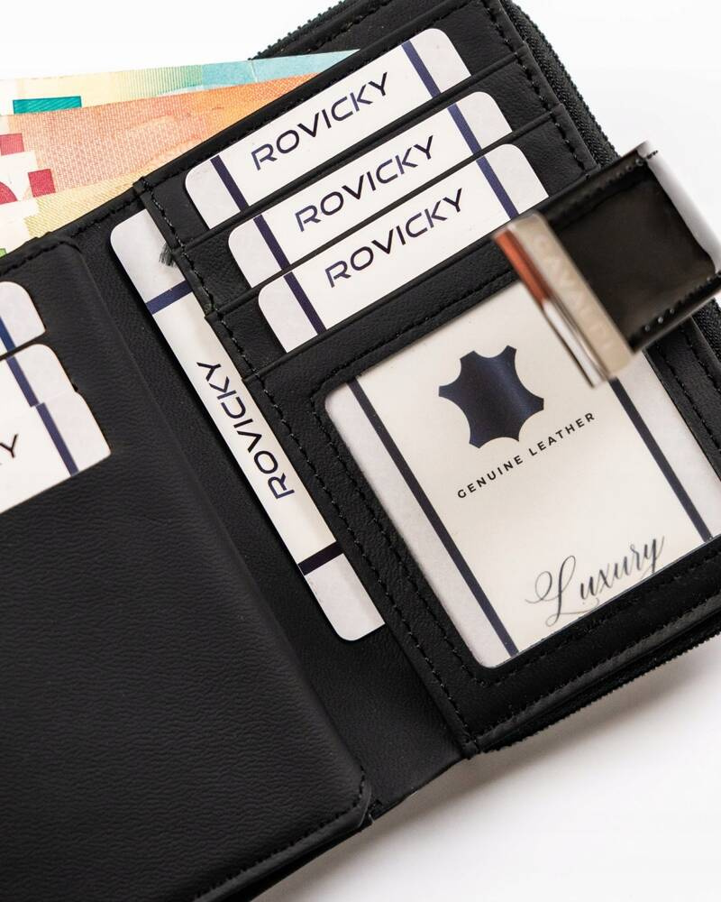 Wnętrze tego modelu jest niezwykle funkcjonalne, pomieści dużą ilość kart, dokumentów, banknotów i bilonu.