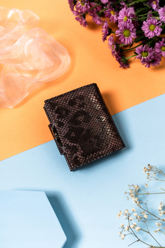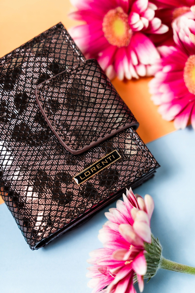 Portfel damski na zatrzask i bigiel z błyszczącej skóry naturalnej - LorentiPortfel damski na zatrzask i bigiel z błyszczącej skóry naturalnej – Lorenti