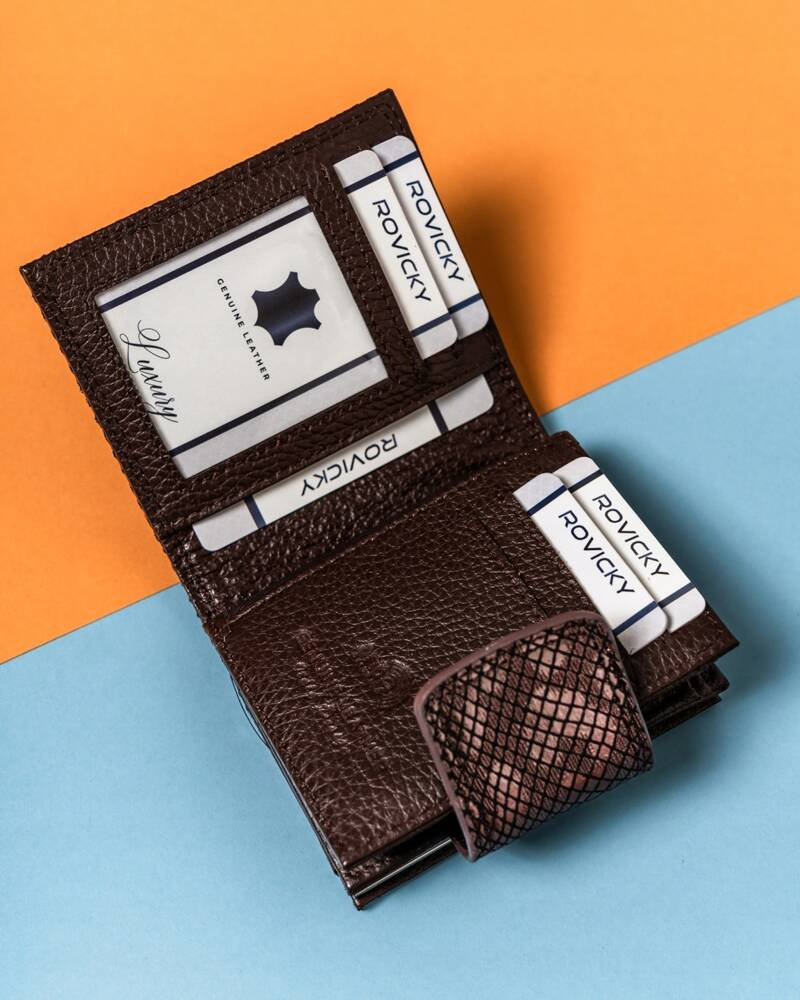 • 1 kieszeń na bilon, zamykana na bigiel, zapewniająca wygodny dostęp i bezpieczne przechowywanie monet;
