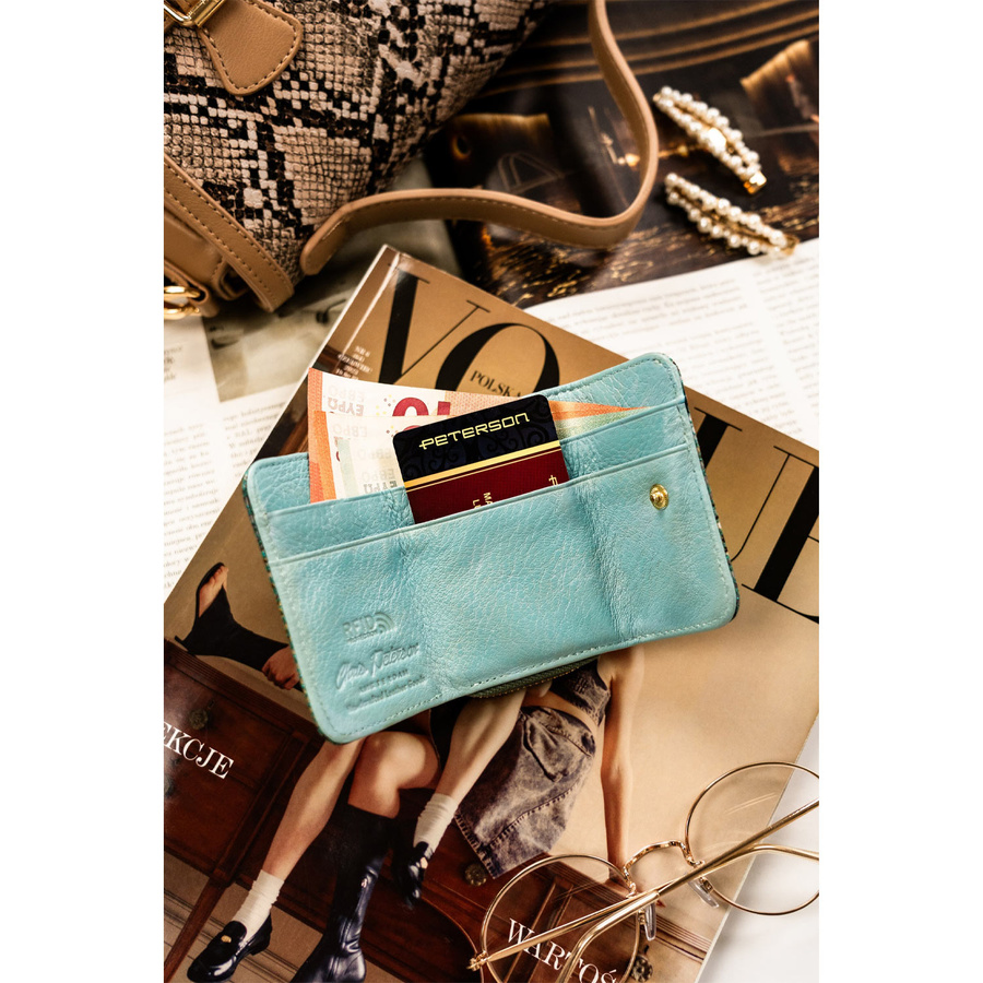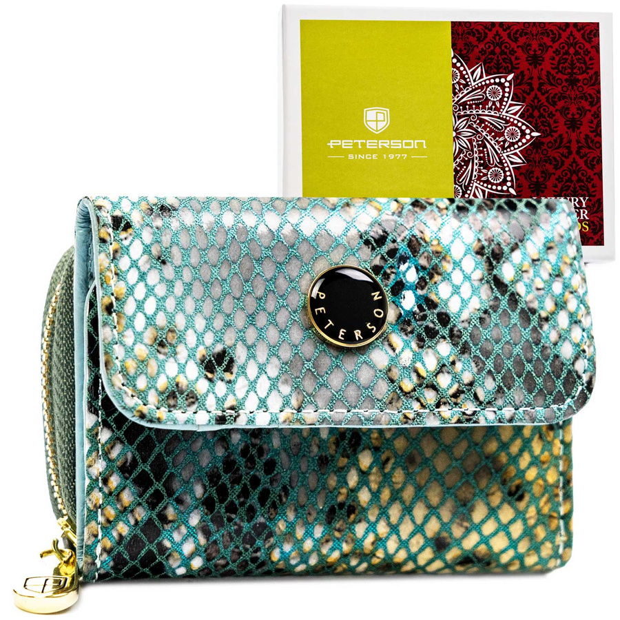Portfel damski skórzany ze złotymi okuciami i ochroną RFID – Peterson