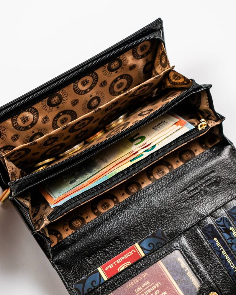 Portfel damski w czerwono-czarnym kolorze z kieszenią wewnętrzną na suwak - PetersonPortfel damski w czerwono-czarnym kolorze z kieszenią wewnętrzną na suwak – Peterson
