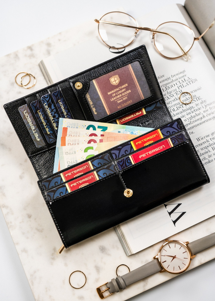 • Odpowiednio zaplanowane wnętrze | Liczne kieszonki i przegródki, dzięki którym pomieścisz w portfelu wszystkie potrzebne rzeczy;