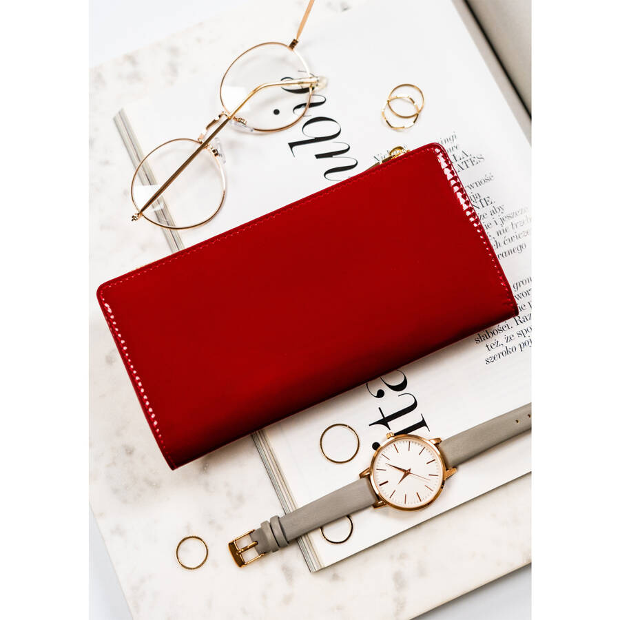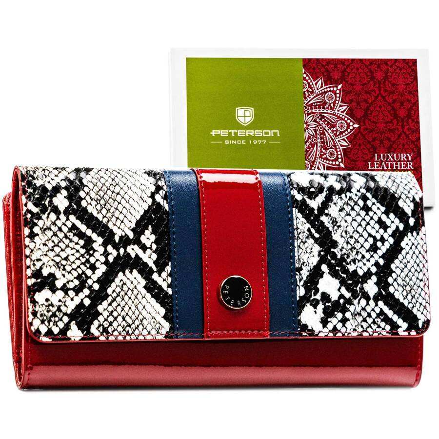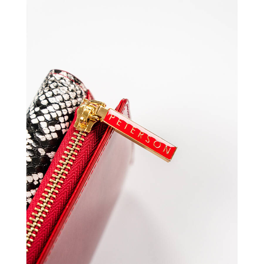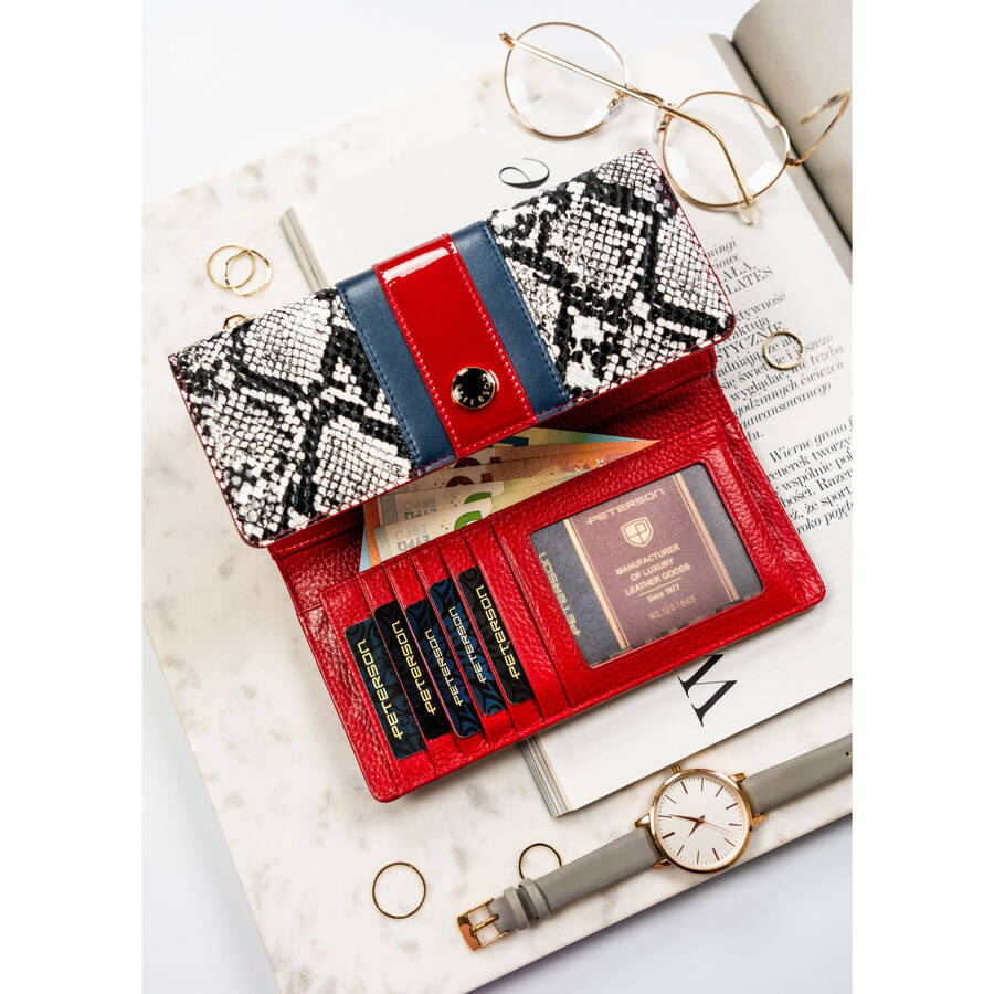 Portfel damski w kolorze czerwonym z wzorem na klapie imitującym skórę węża zamykany na zatrzask – Peterson