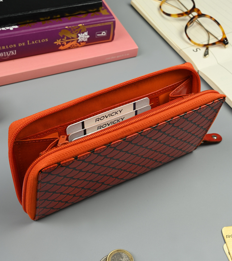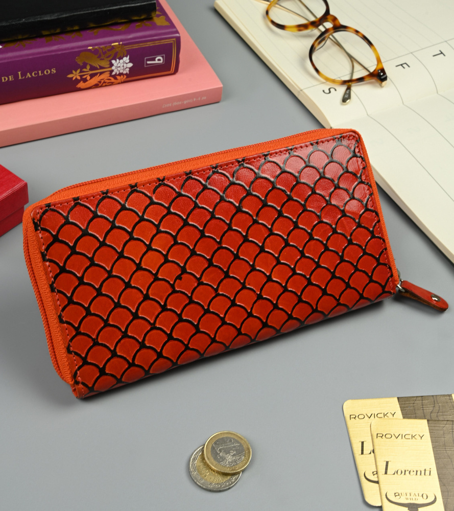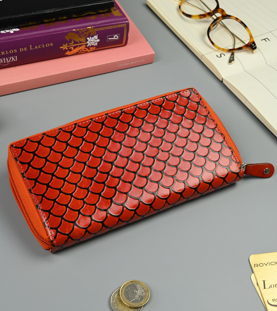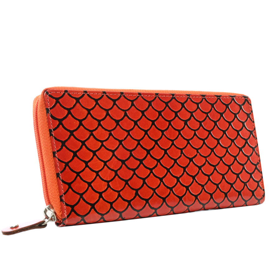 - najwyższa jakość wykonania – ten niecodzienny portfel jest wykonany z najwyższej jakości skóry naturalnej bydlęcej. Swoim wyglądem przyciąga uwagę wszystkich! Na jego powierzchni są tłoczenia, z których stworzono prawdziwe dzieło sztuki, w postaci przestrzennych łusek… 🙂