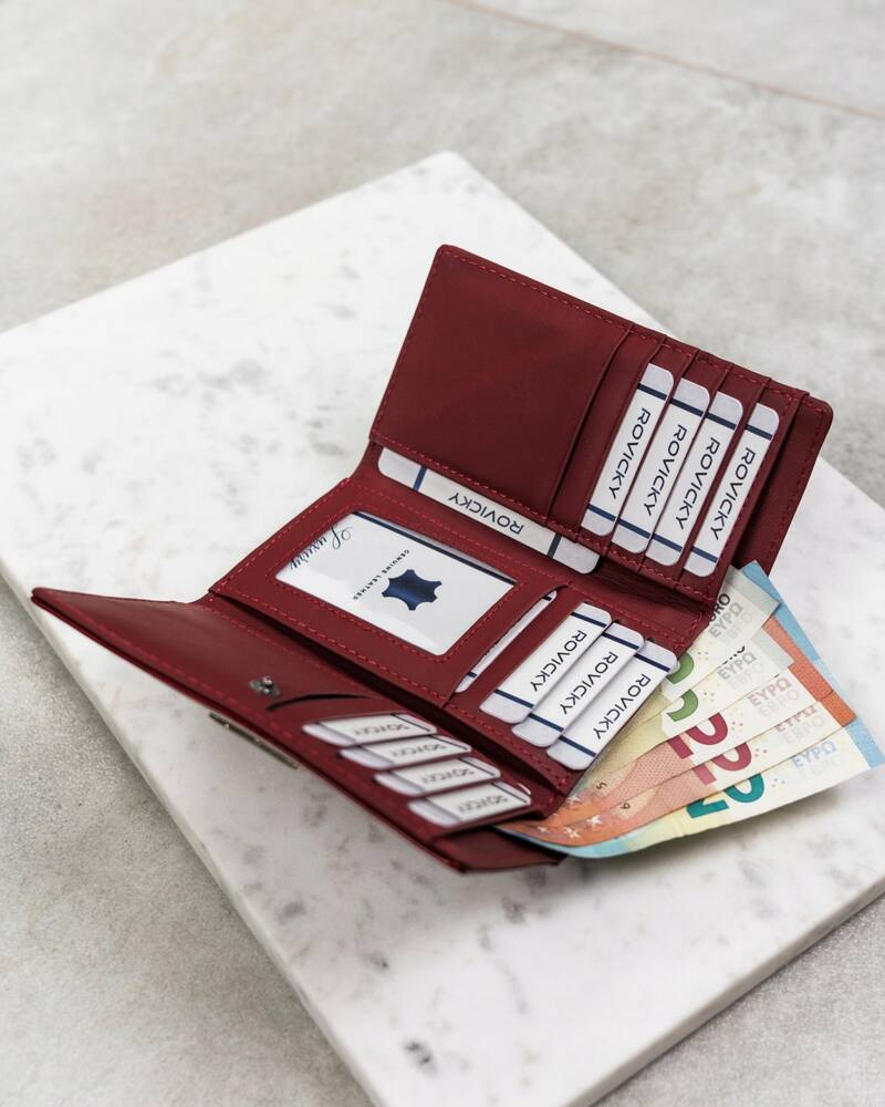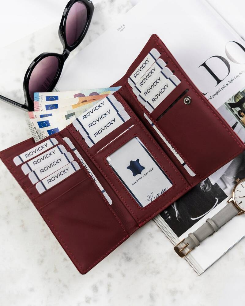 • Klasyczny fason z pięknymi detalami | Elegancki portfel w zmysłowym czerwonym kolorze;