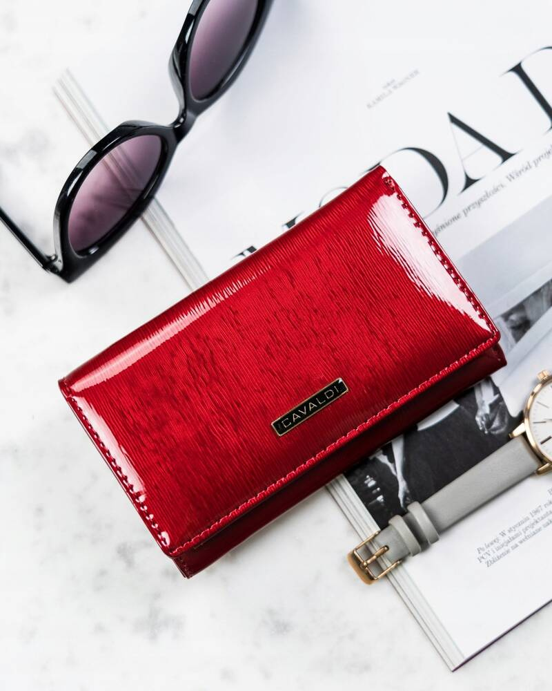 Portfel damski z lakierowanej skóry naturalnej na zatrzask i suwak - 4U CavaldiPortfel damski z lakierowanej skóry naturalnej na zatrzask i suwak – 4U Cavaldi
