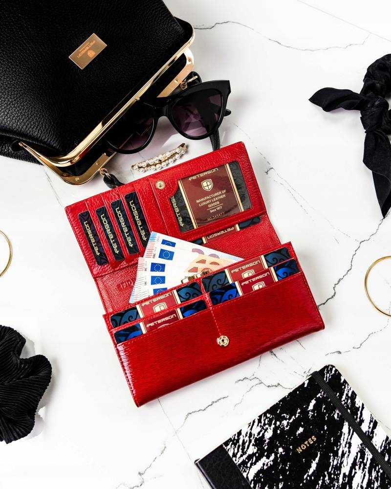 Portfel damski z lakierowanej skóry naturalnej - PetersonPortfel damski z lakierowanej skóry naturalnej – Peterson