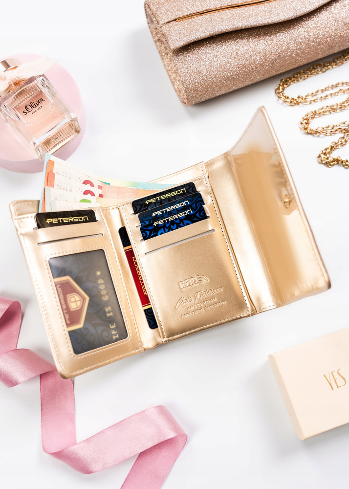 Portfel damski ze skóry ekologicznej na zatrzask i suwak – Peterson