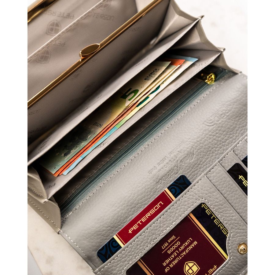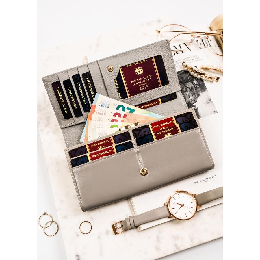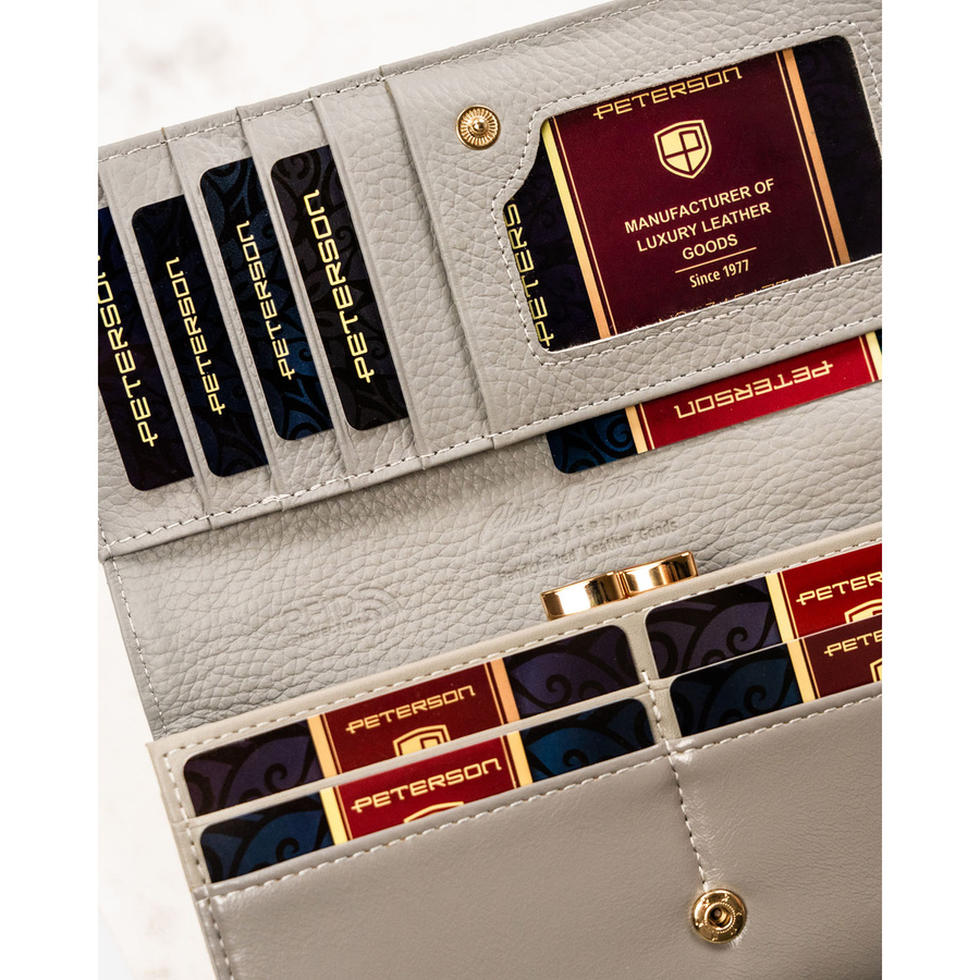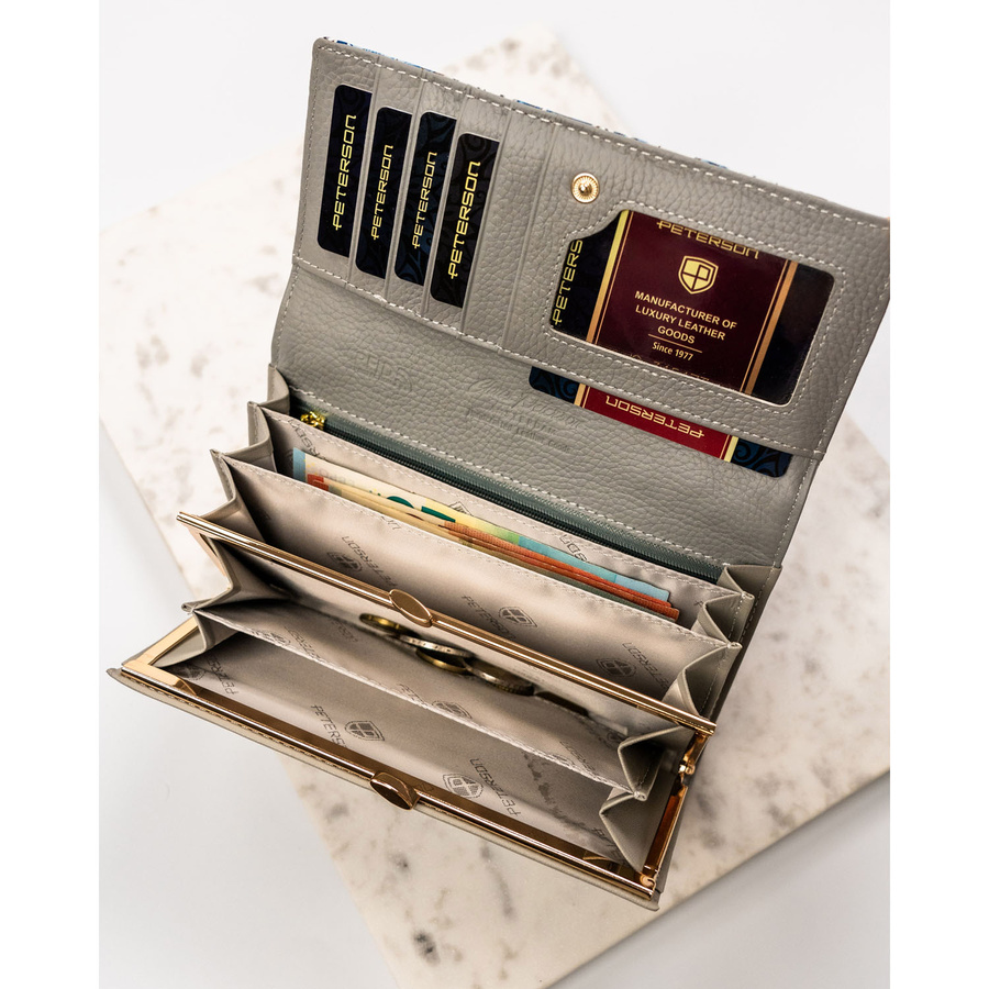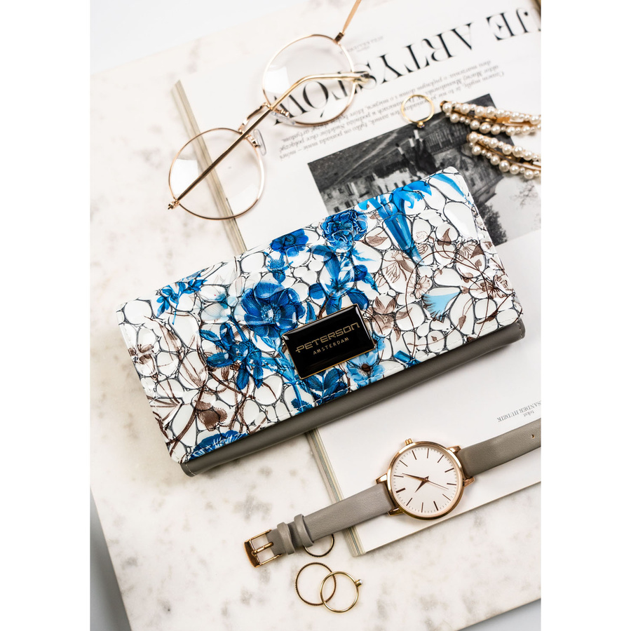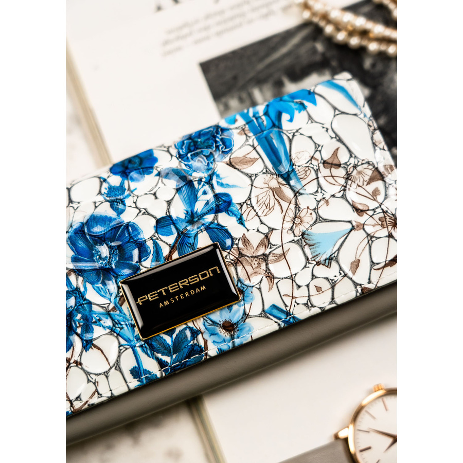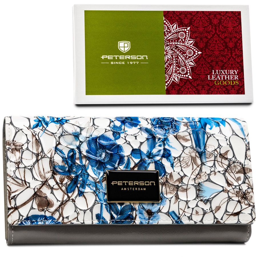 Portfel damski ze skóry naturalnej w kwiatowy wzór, wyposażony w system RFID – Peterson