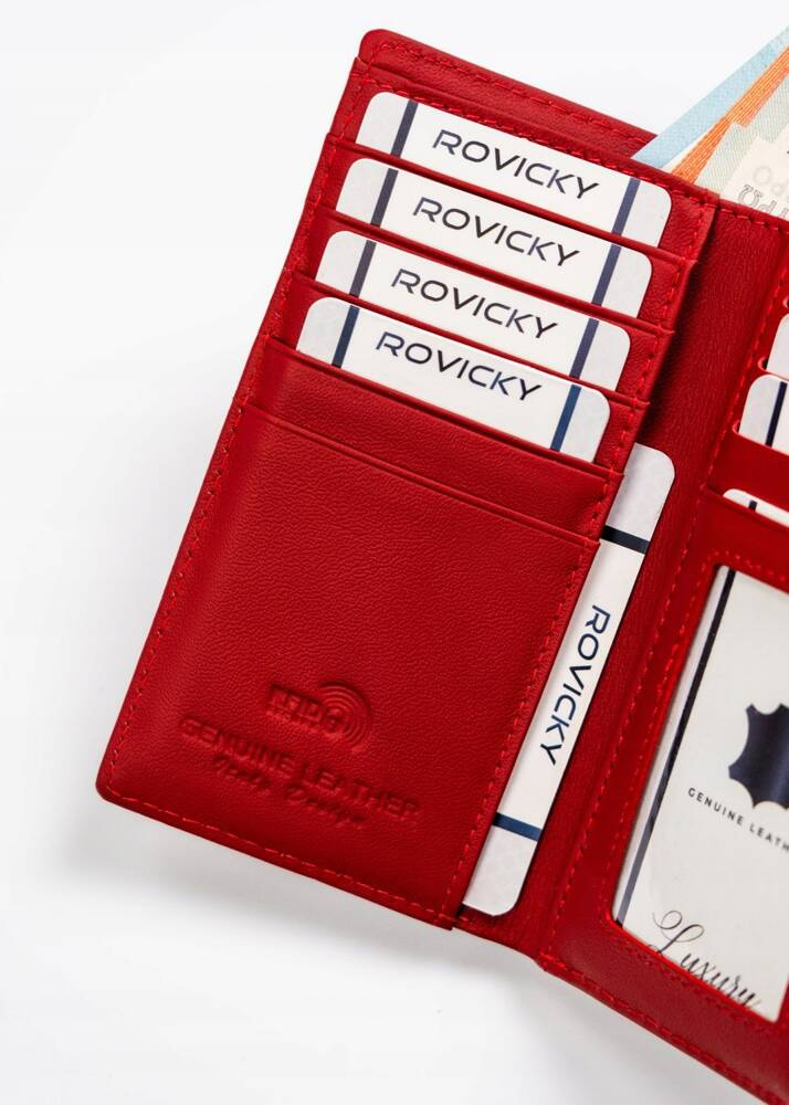 - Ochrona kart RFID | Portfel wyposażony w system STOP RFID, który zabezpiecza kartę w portfelu przed kradzieżą środków z konta.