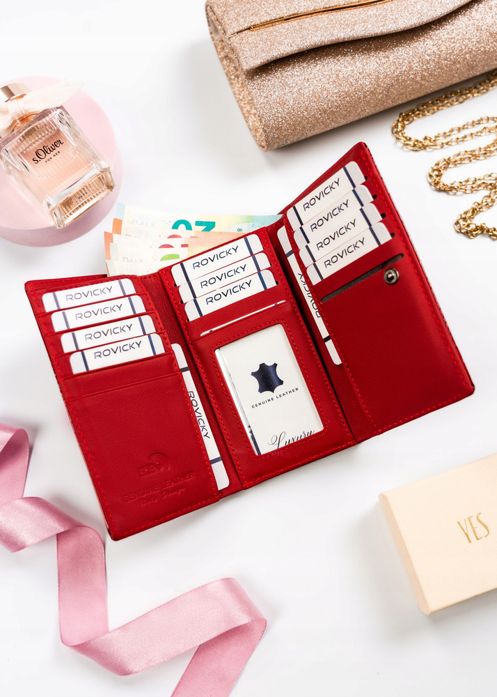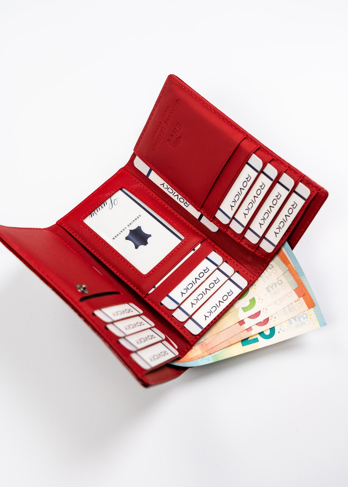 - Wygodne zapięcia | Portfel został wyposażony w wygodne zapięcia: zatrzask i bigiel;