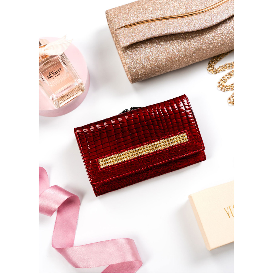 Portfel damski ze skóry naturalnej zdobiony cyrkoniami – Lorenti