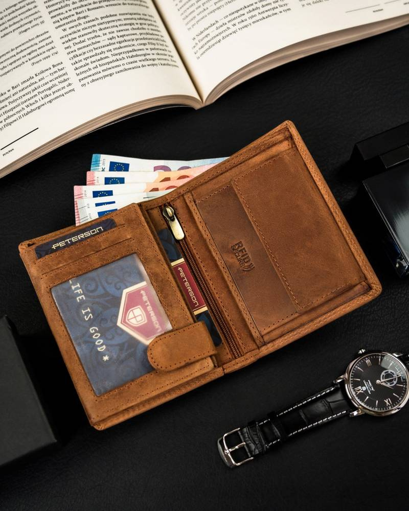 Portfel męski bez zapięcia z naturalnej skóry nubukowej – Peterson