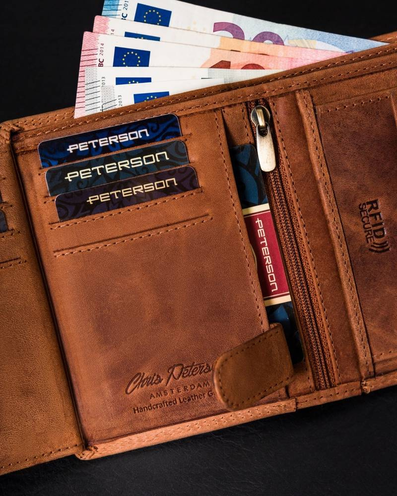 - banknoty schowasz do 2 otwartych, szerokich przegródek, wykończonych materiałową podszewką.