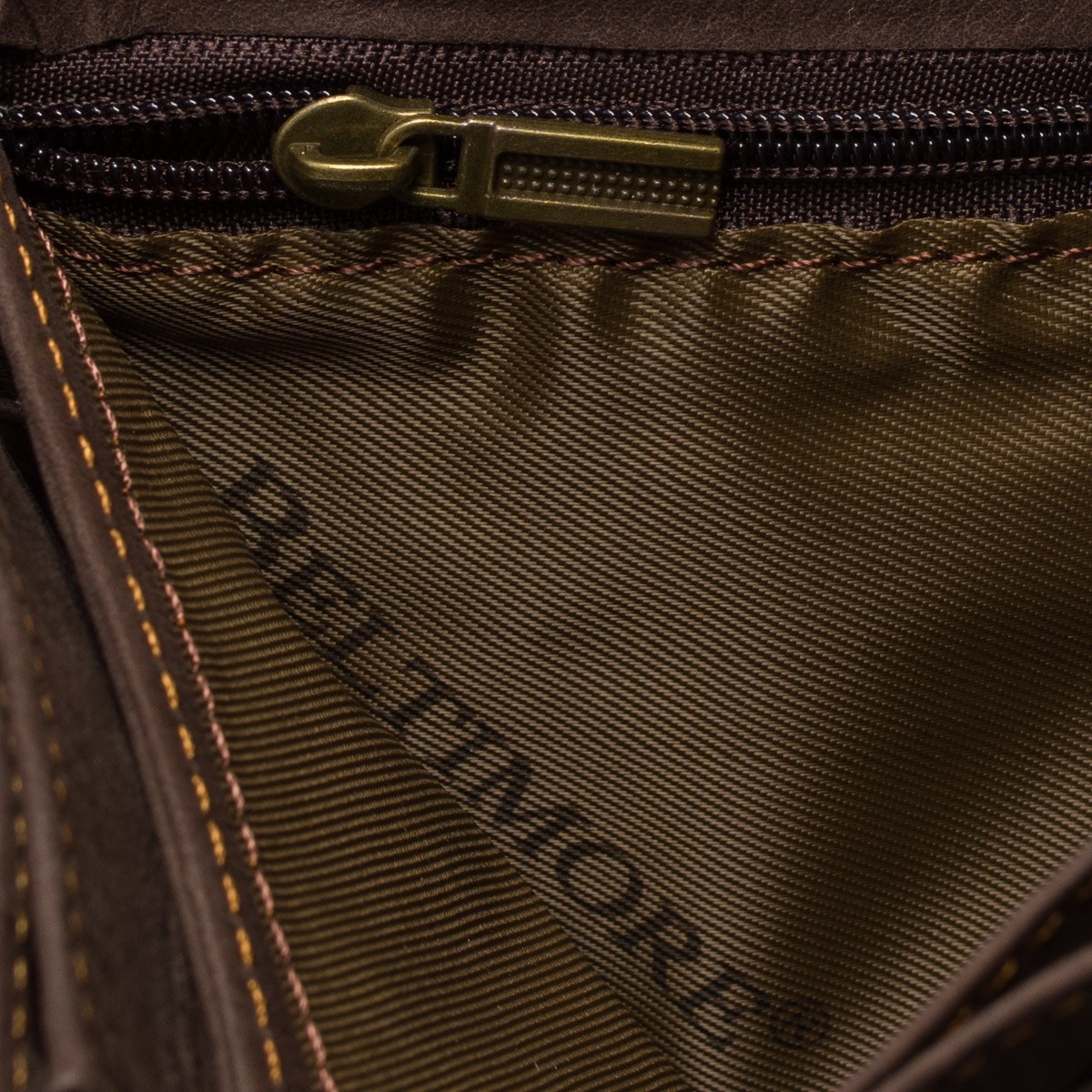 Z przodu portfela jest zewnętrzna komora na bilon. Na klapie zamykanej na zatrzask wytłoczona jest nazwa marki