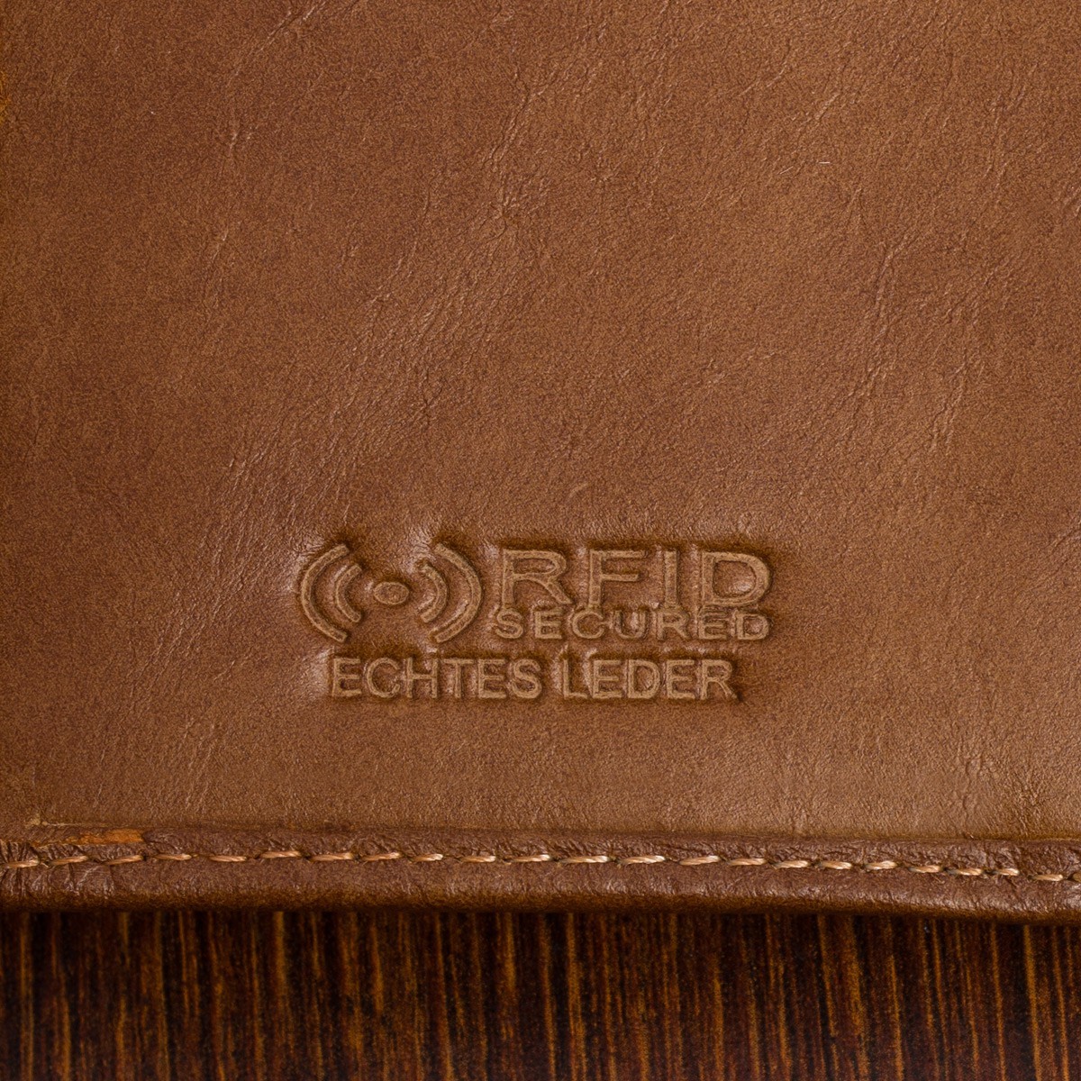 Portfel obszyty jest dodatkowo nicią, która świetnie kontrastuje z fakturą skóry