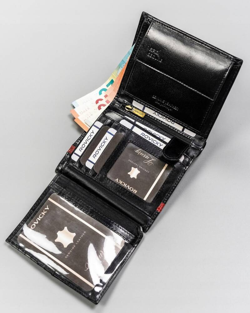 - Bezpieczny | Wyposażony w technologie RFID, która chroni portfel przed złodziejami używającymi czytniku do kart;