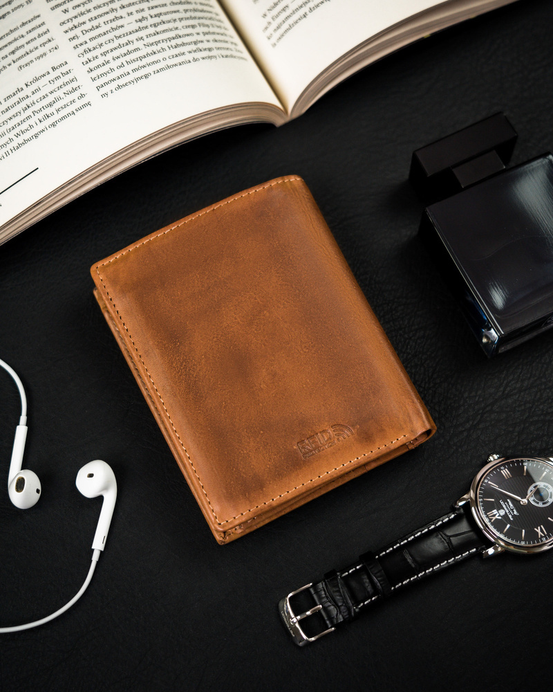 Męski portfel w pionowej orientacji bez zapięcia zewnętrznego. Idealny dla Mężczyzn w każdym wieku!