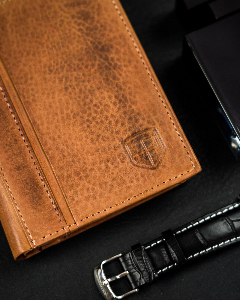 Portfel został wykonany z naturalnej skóry o gładkiej fakturze. Specjalna technika garbowania, niezmienna od dziesięcioleci, pozwala na pokazanie naturalności i piękna tego surowca.