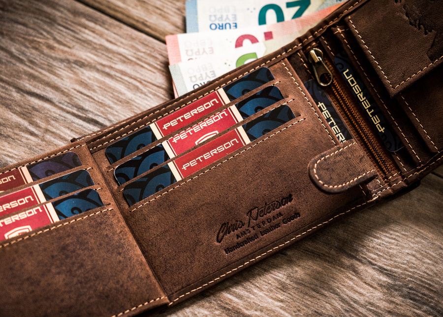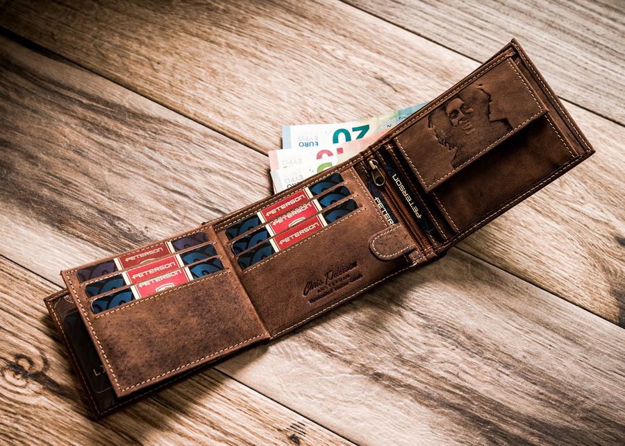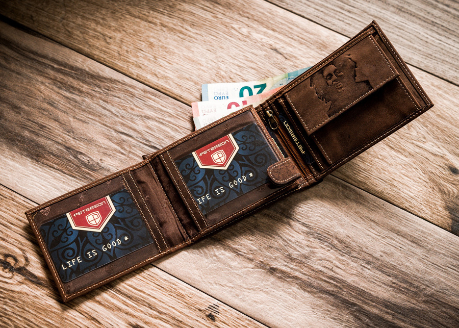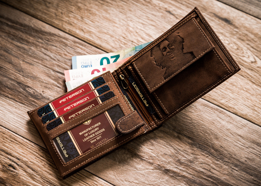 - banknoty schowasz do 2 otwartych, szerokich przegródek, wykończonych materiałową podszewką.