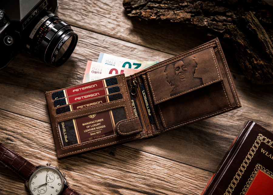 Portfel męski z tłoczonym wizerunkiem Boba Marleya – Peterson