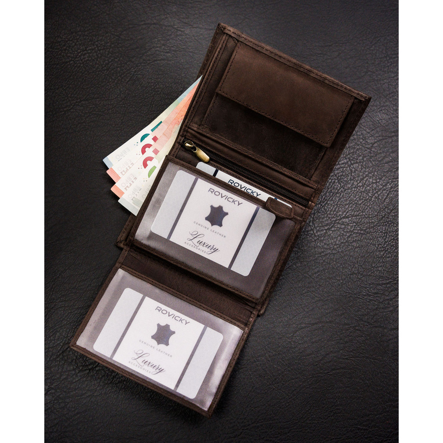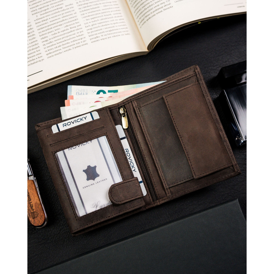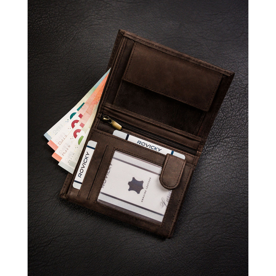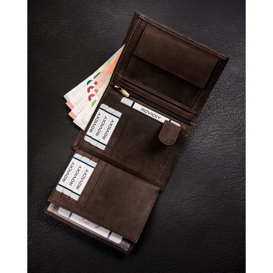 - banknoty schowasz do 2 otwartych, szerokich przegródek, wykończonych materiałową podszewką.
