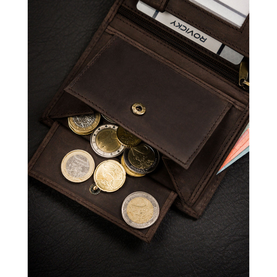 W kieszeniach na banknoty i monety zmieścisz satysfakcjonującą ilość gotówki.