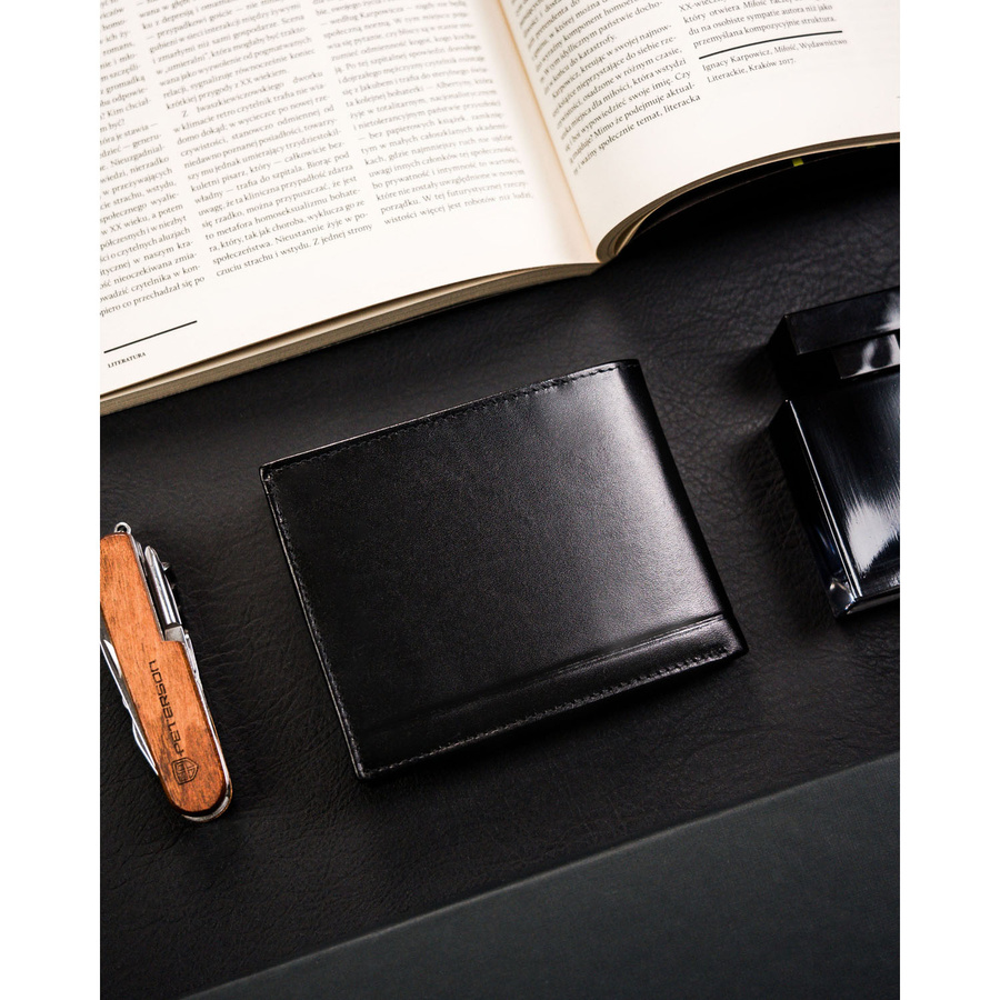 - Wysoka jakość wykonania | Portfel odszyty z naturalnej skóry bydlęcej licowej w zawsze modnym i klasycznym czarnym kolorze.