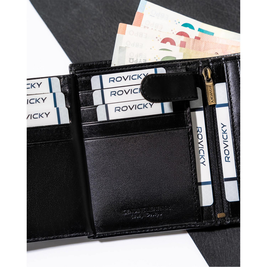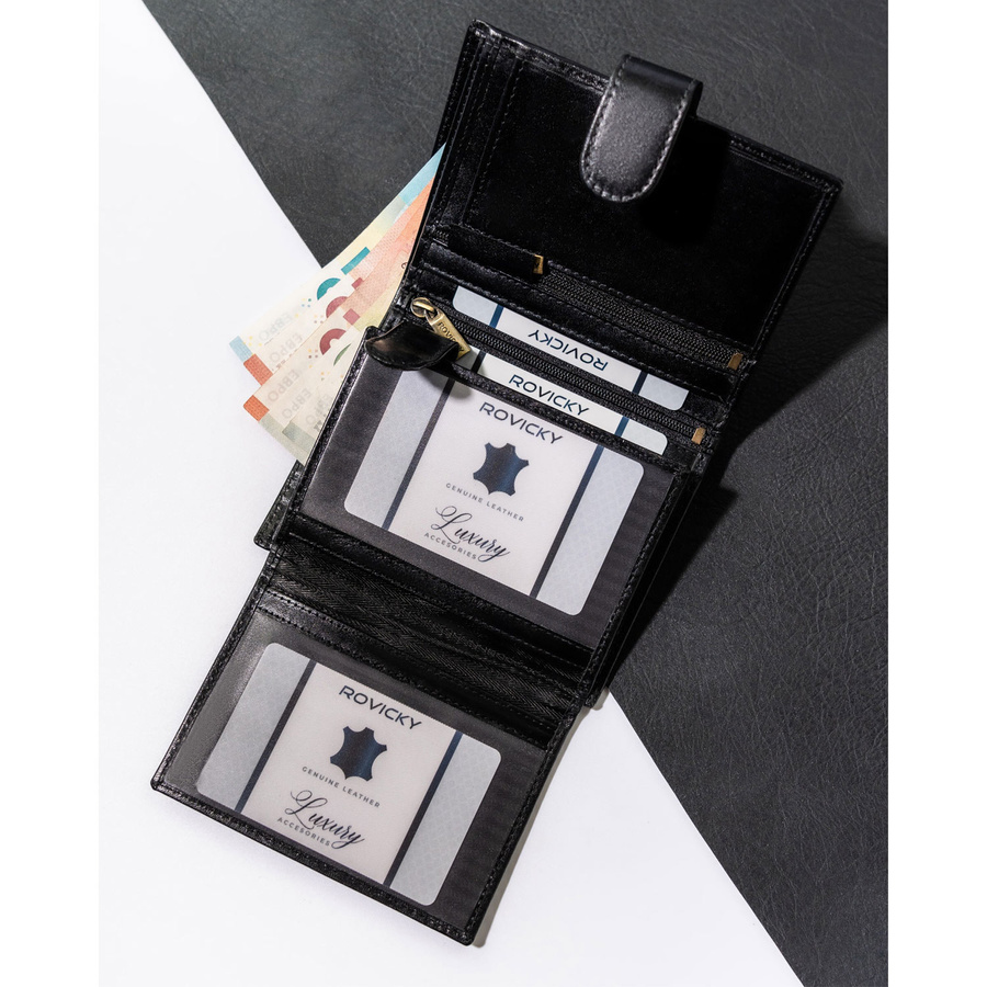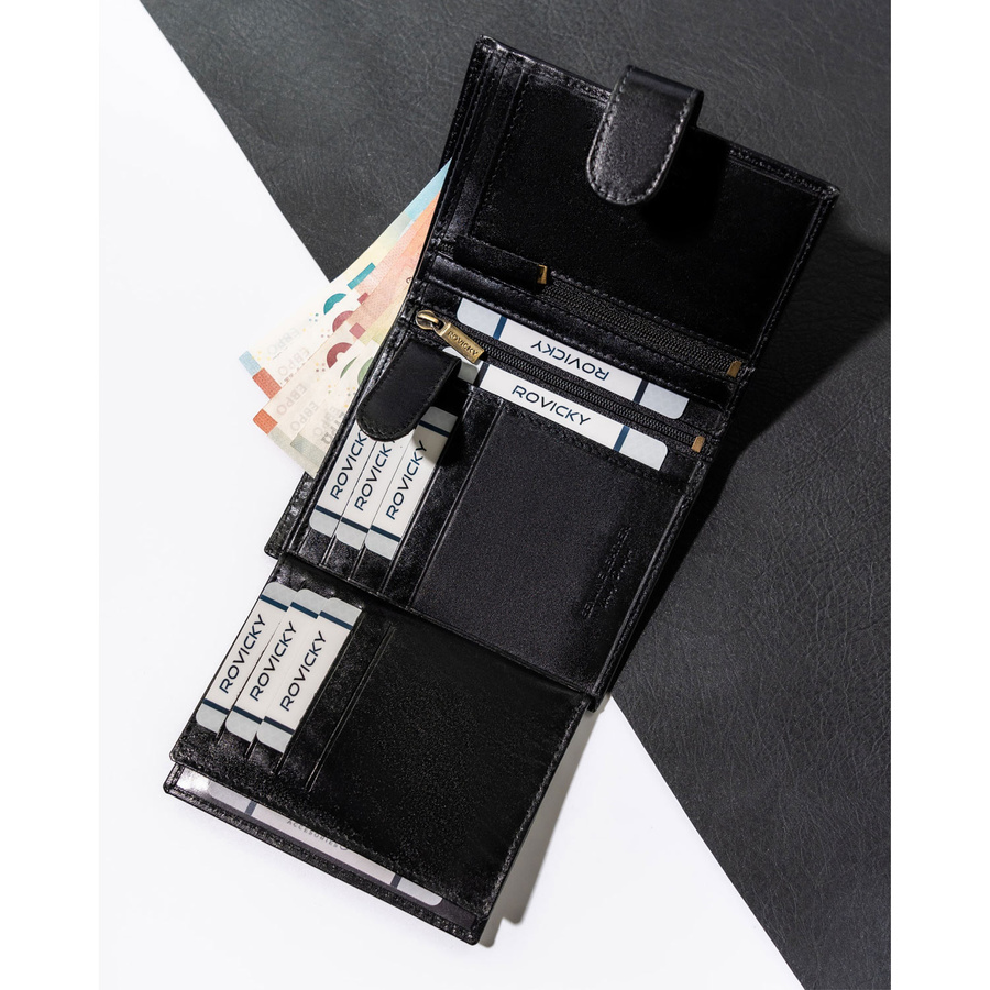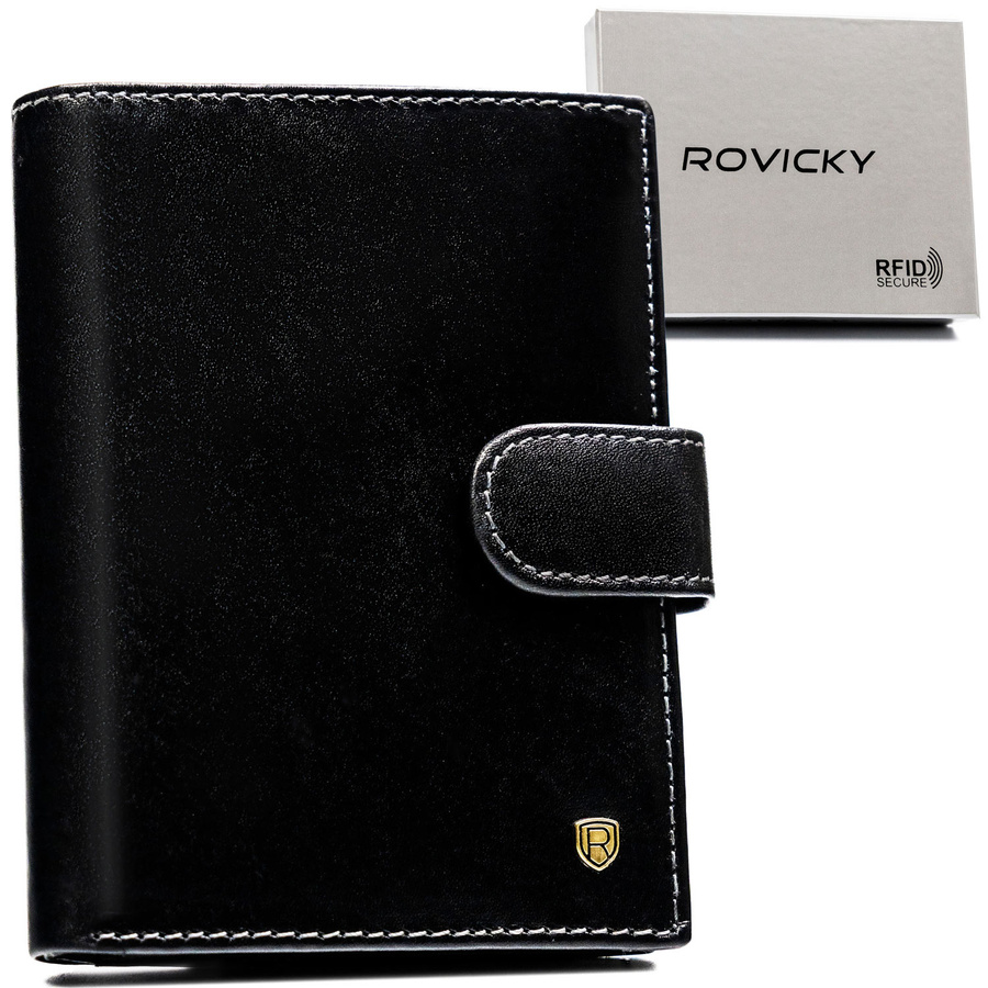 Portfel męski ze skóry naturalnej zamykany na zatrzask - RovickyPortfel męski ze skóry naturalnej zamykany na zatrzask – Rovicky