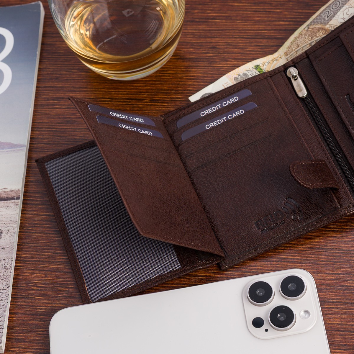 ? Idealny na prezent Każdy portfel zapakowany jest w eleganckie, firmowe pudełko o solidnym wykończeniu – gotowy do wręczenia jako wyjątkowy upominek.