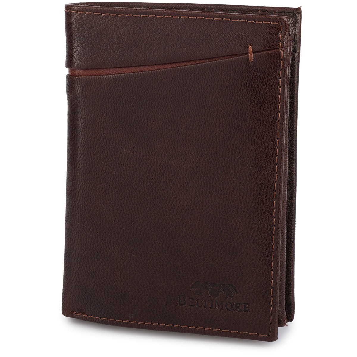 ? Stylowe detale i precyzja wykonania- na froncie portfela umieszczono subtelne logo marki Beltimore, a całość uzupełniają gustowne przeszycia w kolorze brązowym, widoczne z przodu i z tyłu.