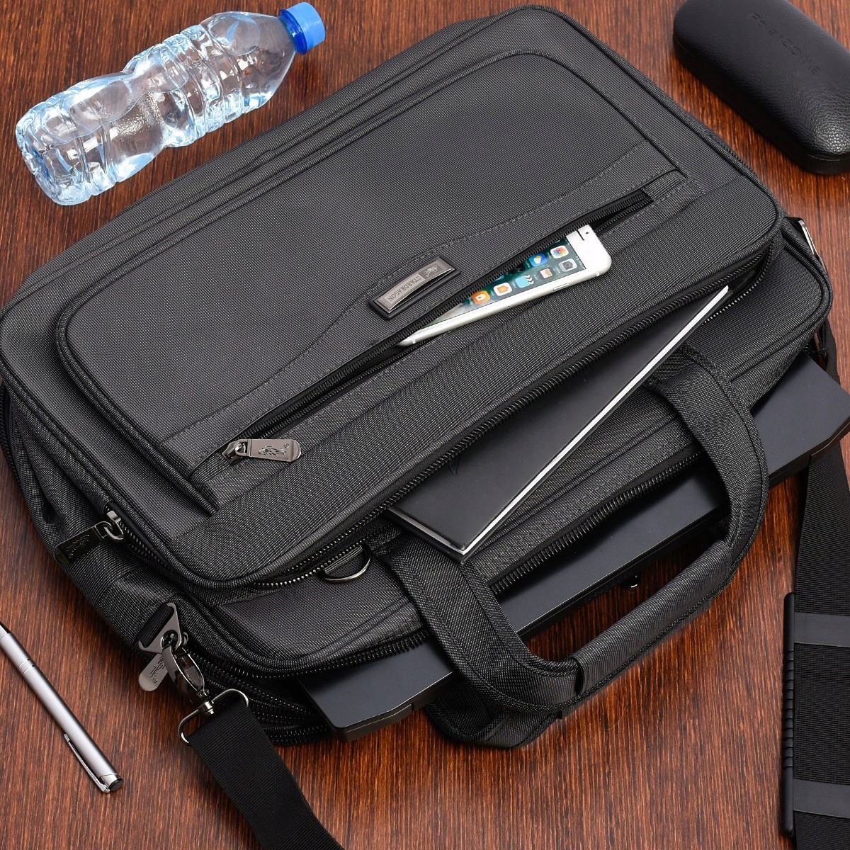 - 3 Komory na Organizację: Trzy oddzielne komory pozwalają na idealną organizację Twoich rzeczy. Duża kieszeń główna pomieści dokumenty w formacie A4, a także laptopa o rozmiarze do17 cali. Torba sprawdzi się również na lotnisko, gdyż wyposażona jest w specjalny pas, który pozwala założyć ją na walizkę