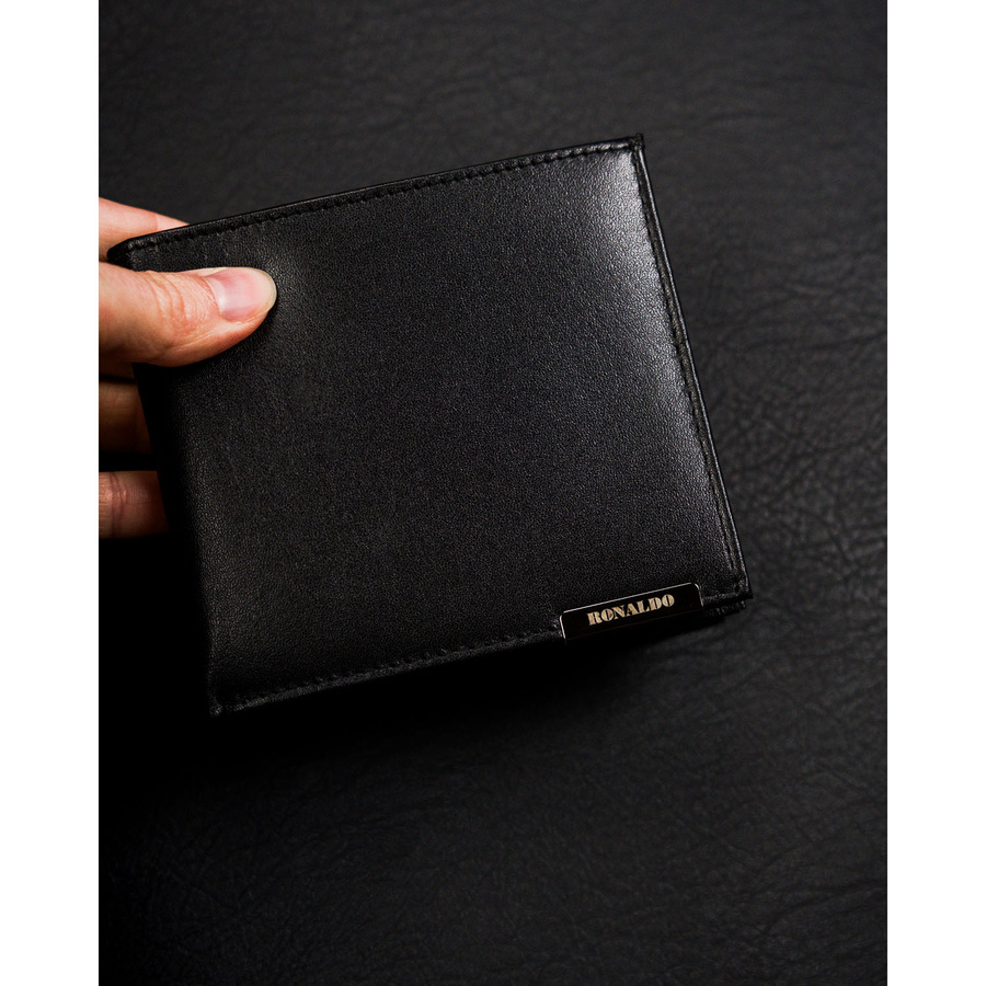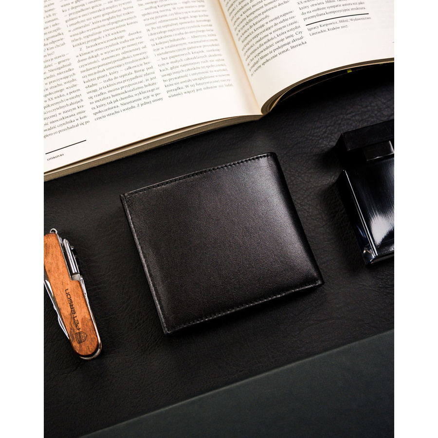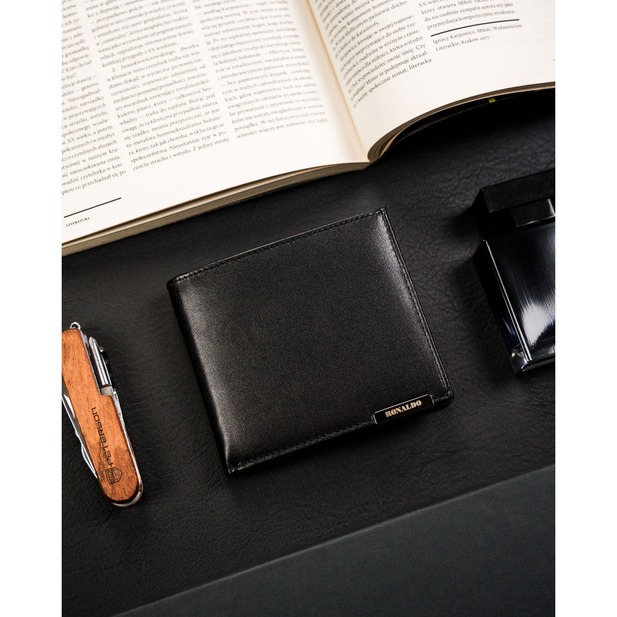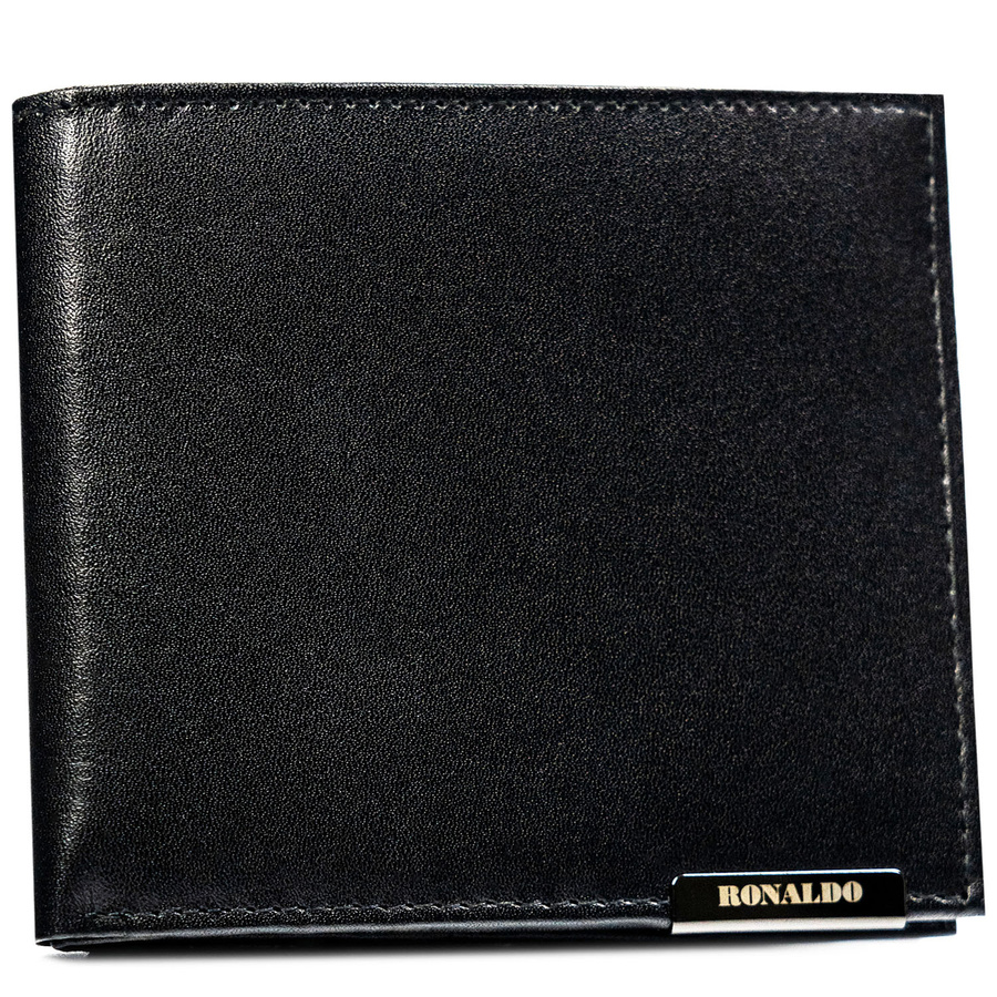 Poziomy, czarny portfel męski ze skóry naturalnej bez zapięcia zewnętrznego – Ronaldo