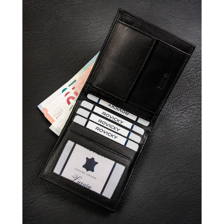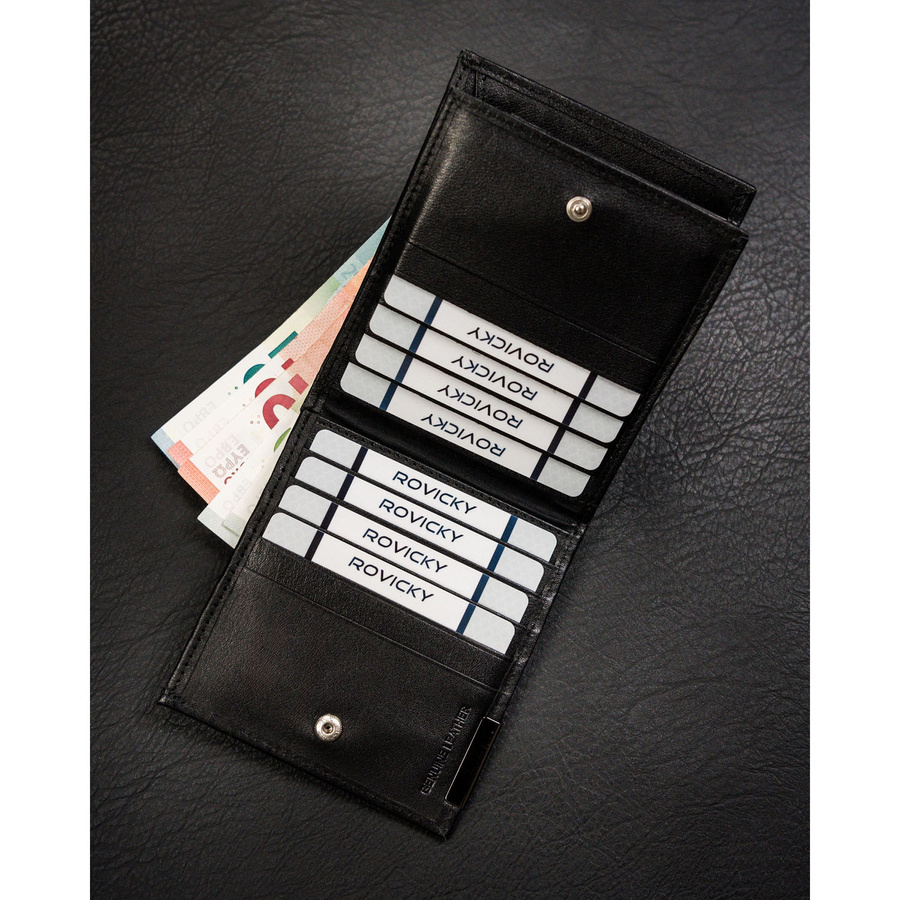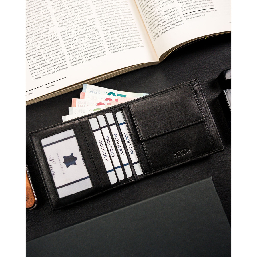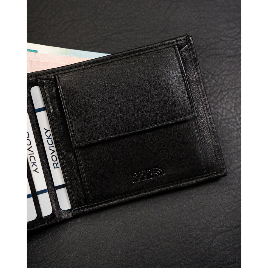 Poziomy, czarny portfel męski ze skóry naturalnej bez zapięcia zewnętrznego – Ronaldo