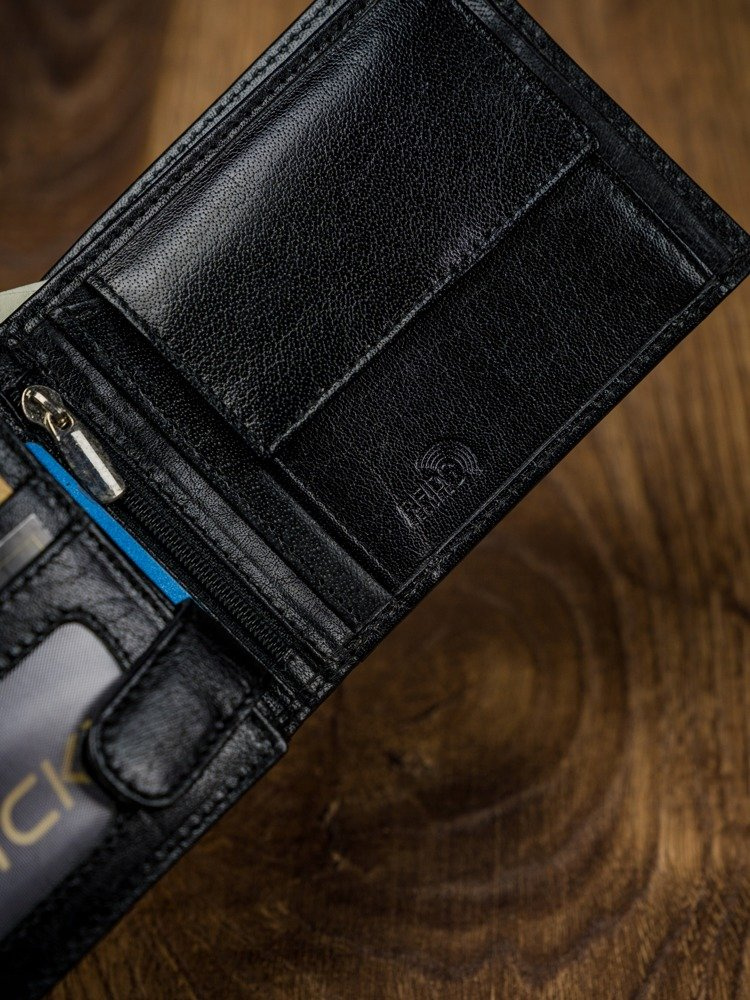 - Portfel zabezpieczony membraną RFID Stop, która chroni dane z kart zbliżeniowych przed skimmingiem;