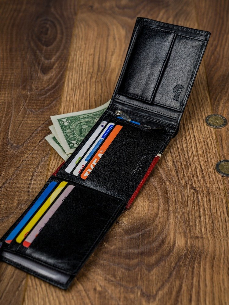 - Klasyczny, zgrabny portfel męski wykonany z najwyższej jakości skóry naturalnej;