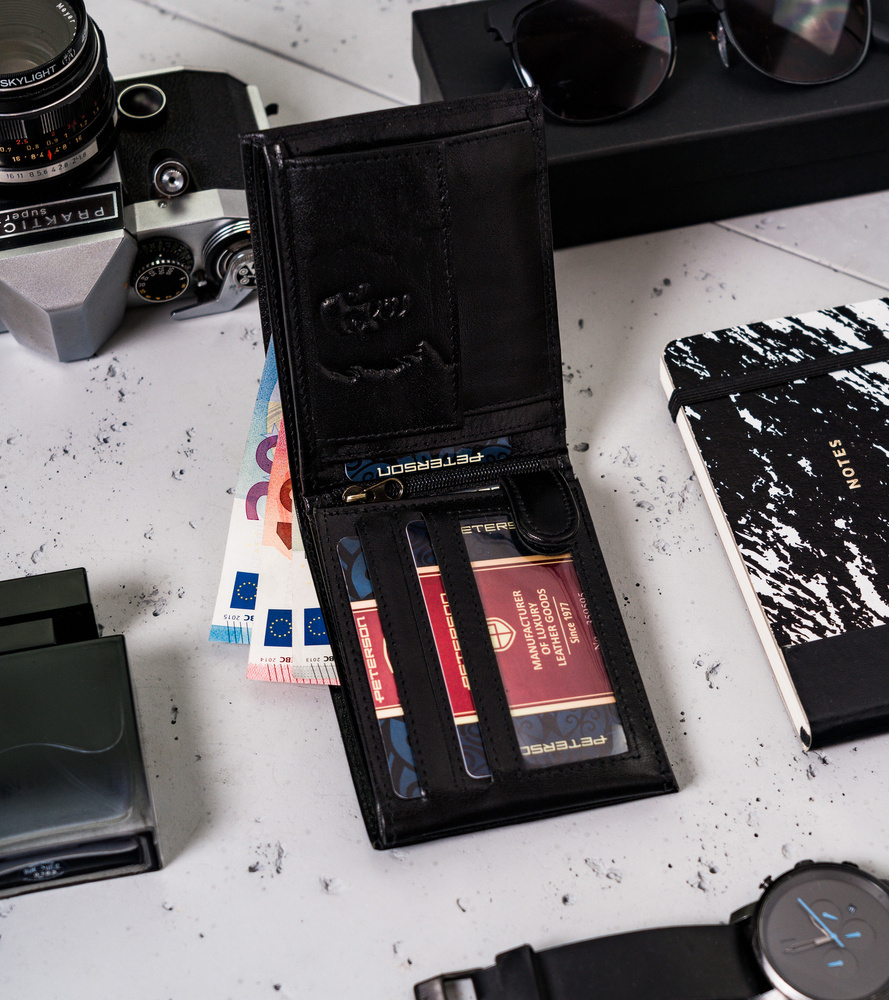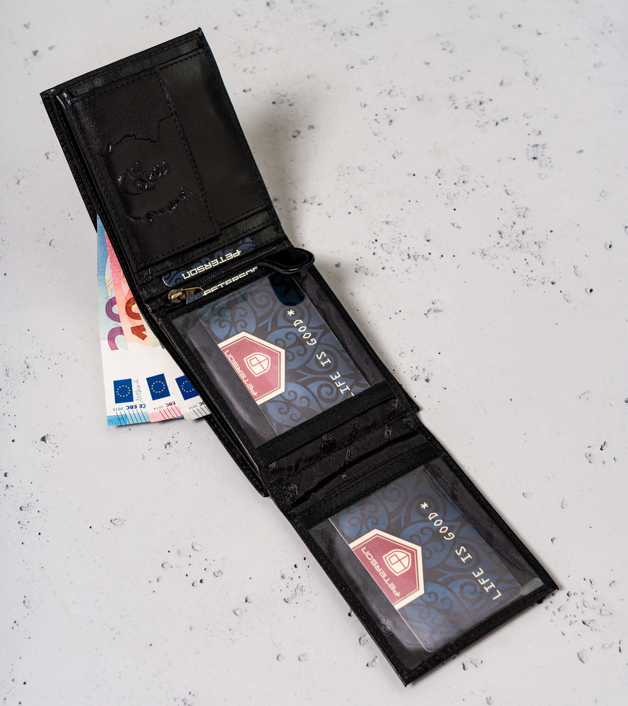 Poziomy portfel męski z ozdobnym tłoczeniem — Peterson