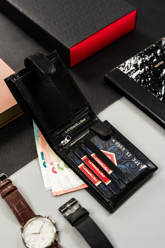 - Jakościowe pudełko | Portfel dodatkowo zapakowany jest w oryginalne pudełko marki Peterson®.