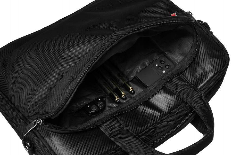 - Liczna ilość komór, kieszeni i przegródek na długopisy;