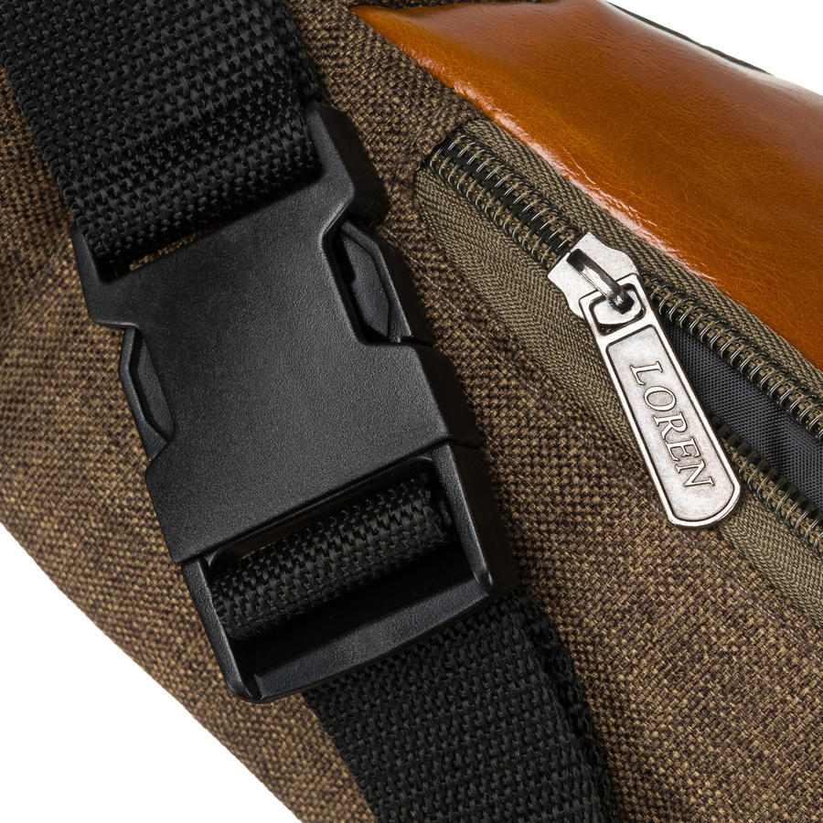 Praktyczna saszetka z poliestru w zielono-brązowym kolorze z kieszenią zewnętrzną – Loren