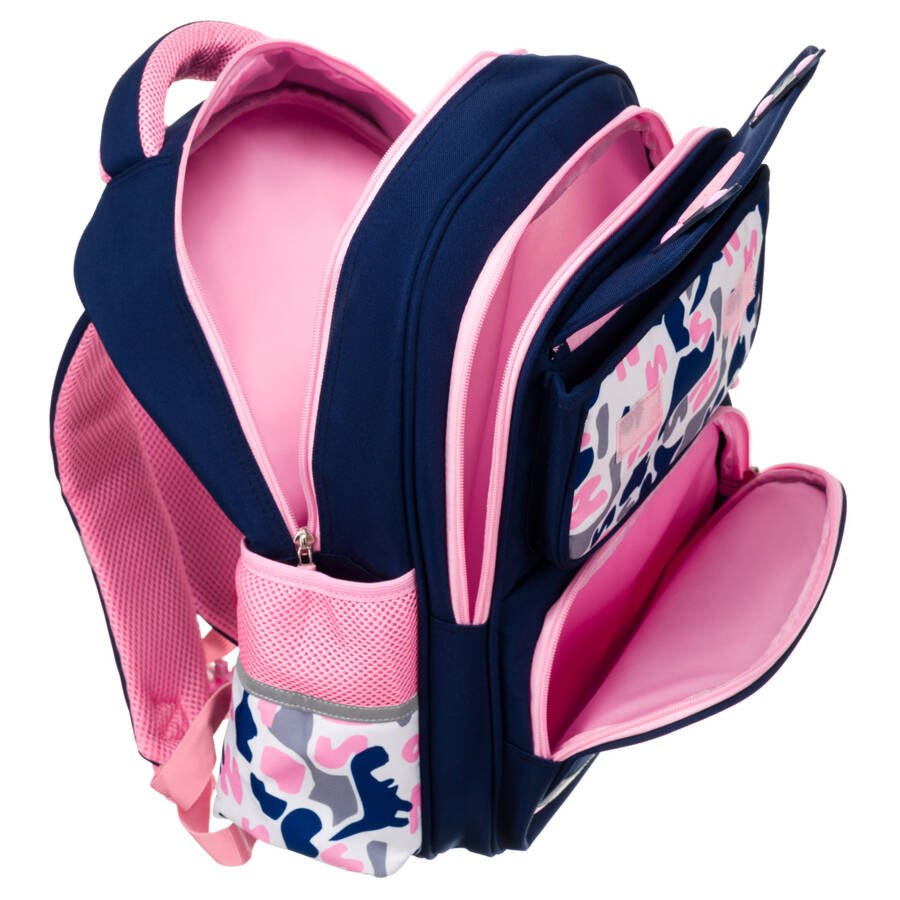 - 2 obszerne komory główne zamykane na zamki błyskawiczne. Ich odpowiednia budowa zapewnia odpowiednią ilość miejsca na zeszyty, książki czy laptopa.