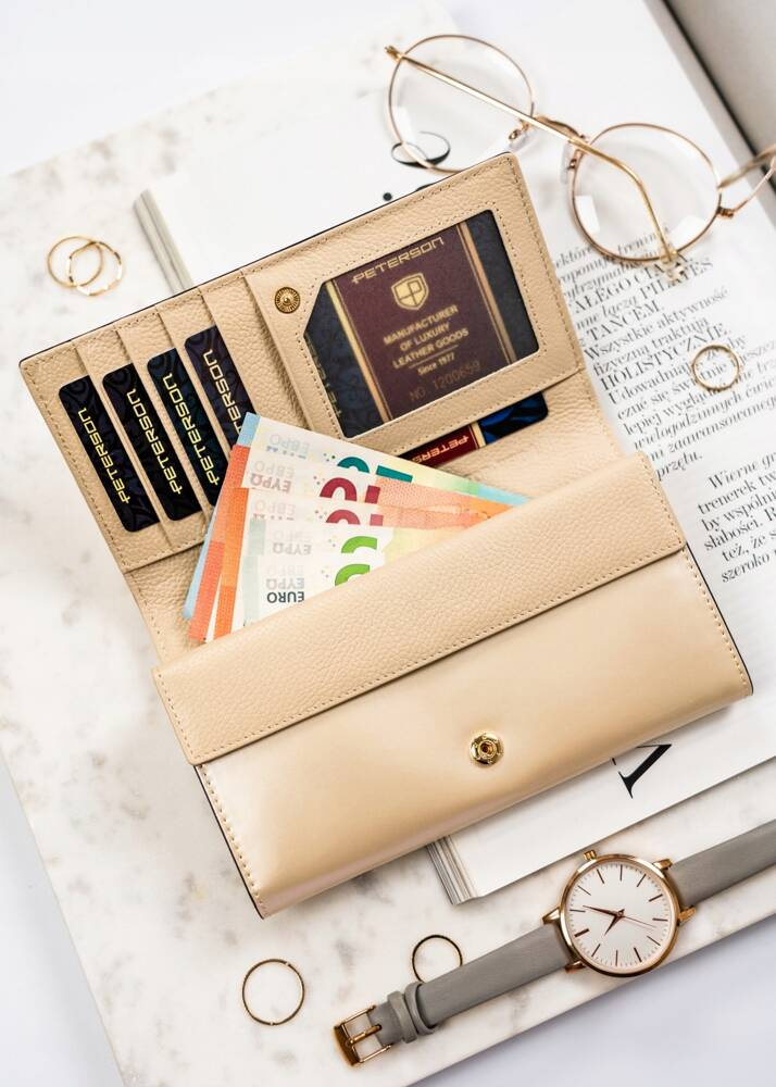 Praktyczny portfel damski w kolorze beżowym z systemem RFID – Peterson